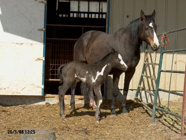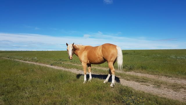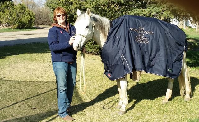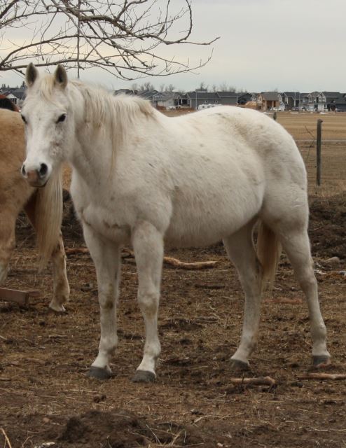 "Pearl" is one of the sweetest mares. She started out as a reining horse then progressed to a penning horse before becoming a momma. She was a very easy horse to ride, quiet and kind, had some good cow sense and speed, but only went as fast as you wanted to go. She competed at the Calgary Stampede a time or two and lots at the local level carrying her riders to many victories. She is homozygous black and carries a dominant white gene so we expect her foals to always be dark colored with a chance of white. She had her first foal in 2020 and it was white with a black medicine hat. Looking forward to lots more colourful foals from her.