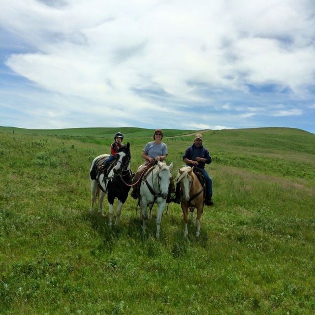 "Out for a nice trail ride. Paisley on Keotas Fast Cash, Cathy on Mighty Blue N True, and Jake on Amber N Ivory" |