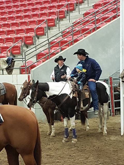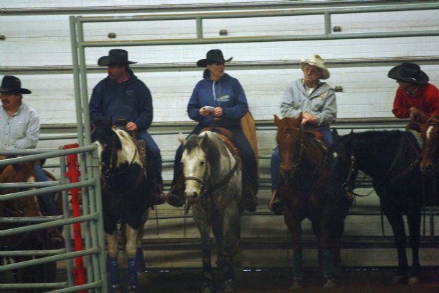 "Tyler Daniels and Colby Daniels riding Keotas Fast Cash. Waiting their turn at the Canadian National Team Penning Finals" |