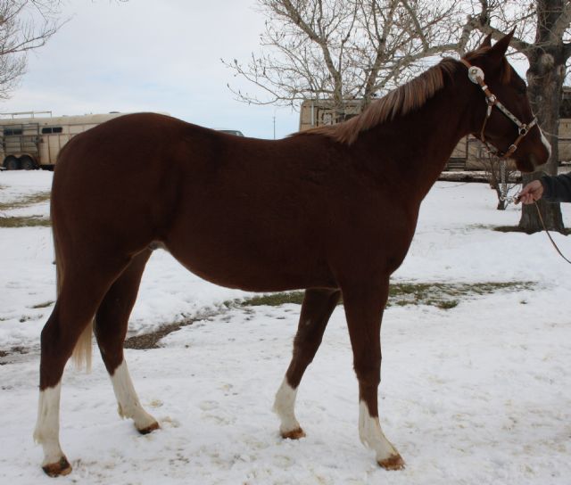"Stubby" is a very well built, good looking young fellow ready to be started. He is friendly and halter broke and up to date with his farrier and deworming. Contact us for pricing.