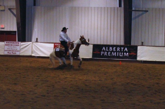 "Checkers" is a very nicely put together gelding. He has had a full year of reining training and has won the Northern Color Connections junior reining futurity in 2008 as well as 3 APHA reining points. Since then Checkers has been used in a feedlot checking pens and as a penning horse. As a penning horse he has earnings of approximately $10,000. He is very cowy, athletic, and powerful. He might be a good candidate for a barrel horse even now.
