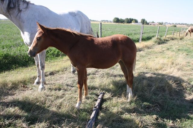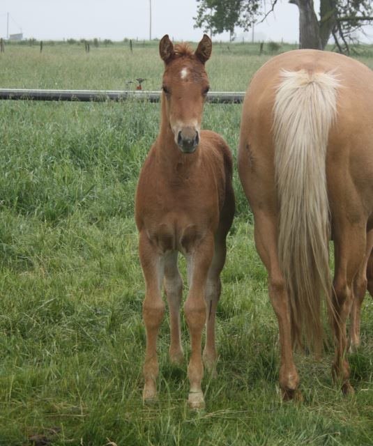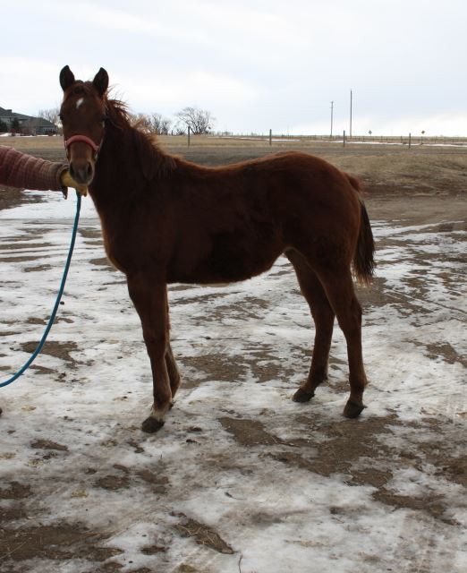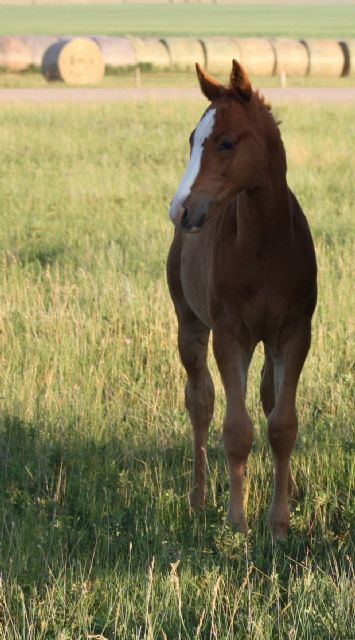 Very friendly, easy going, pretty, sorrel solid paint bred colt with a flaxen mane and tail. Full brother to Deltas Sylvan Song, he has the same long flowing stride and athletic qualities. "Ernie" is very friendly, always one of the first to greet you in the pen, easy to catch and handle. Will be consigned to the Perlich Bros. Spring Horse Sale, May 3, 2013.