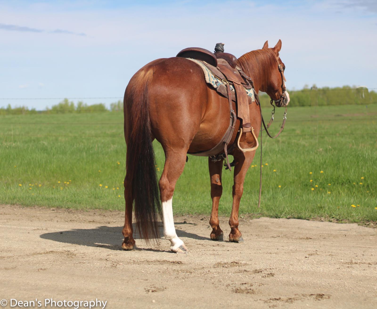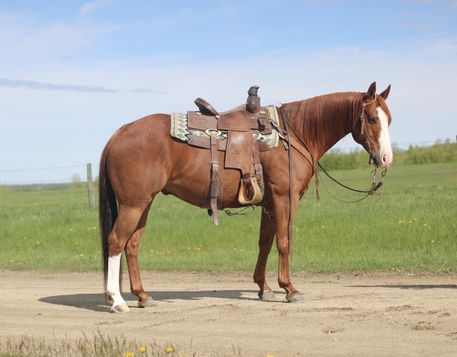 Rap Cat is a very gentle sorrel heel horse, breakaway horse and junior rodeo horse. He stands 14.0HH and weighs about 1000lbs. He is great for kids or any age of rider. Rap Cat is good in the box, he breaks flat and has natural rate. He will transition from different levels of rider with no issues. He is smooth in all gaits and has a great personality to be around. He is very forgiving and would suit greener riders as well. Rap Cat is the type of gelding that the whole family will love, and can go to rodeos, then be ranched on when you get home. He definitely would be an asset to anyone's remuda. For any questions or to come and try him for yourself call Rory Patten at 780-542-0643.