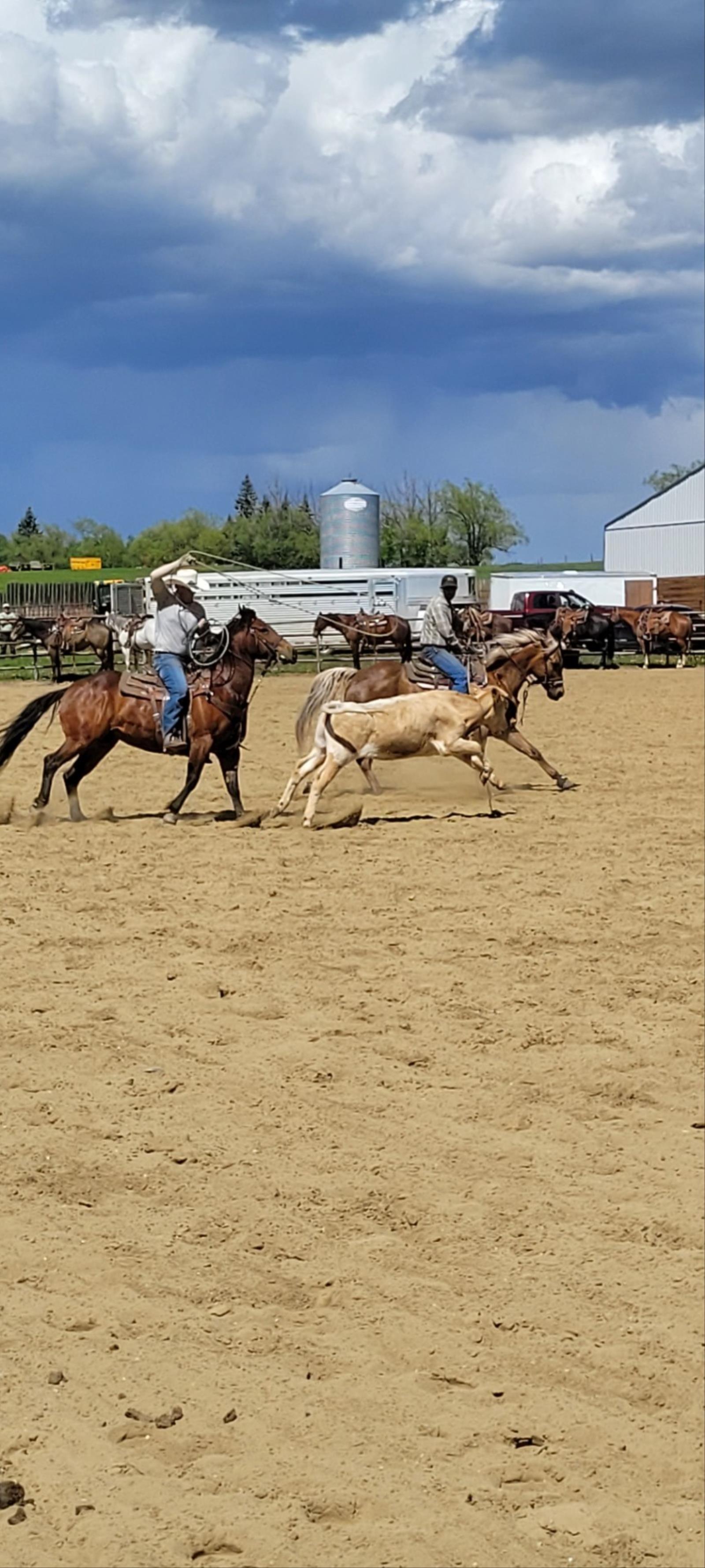 He has had a lot of riding both in and out of the arena. He is very nice to ride outside and is great in the branding pen.