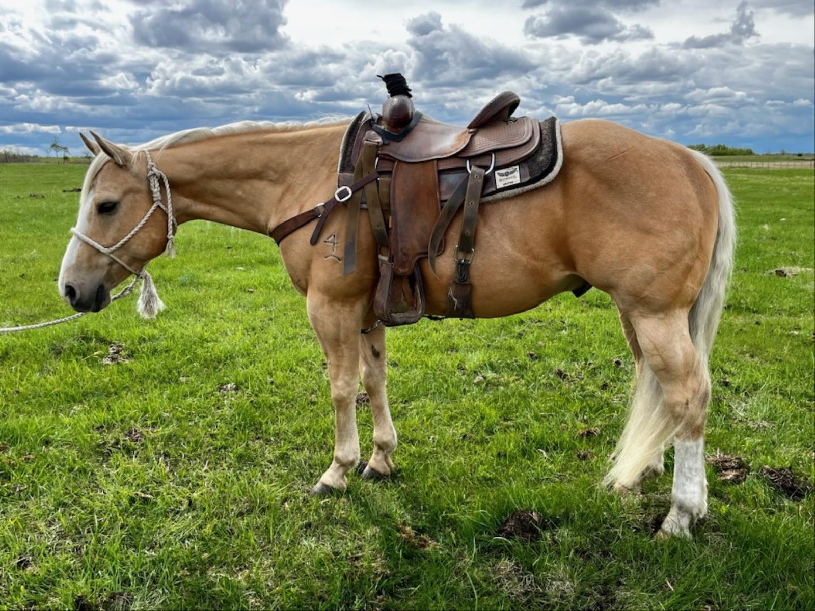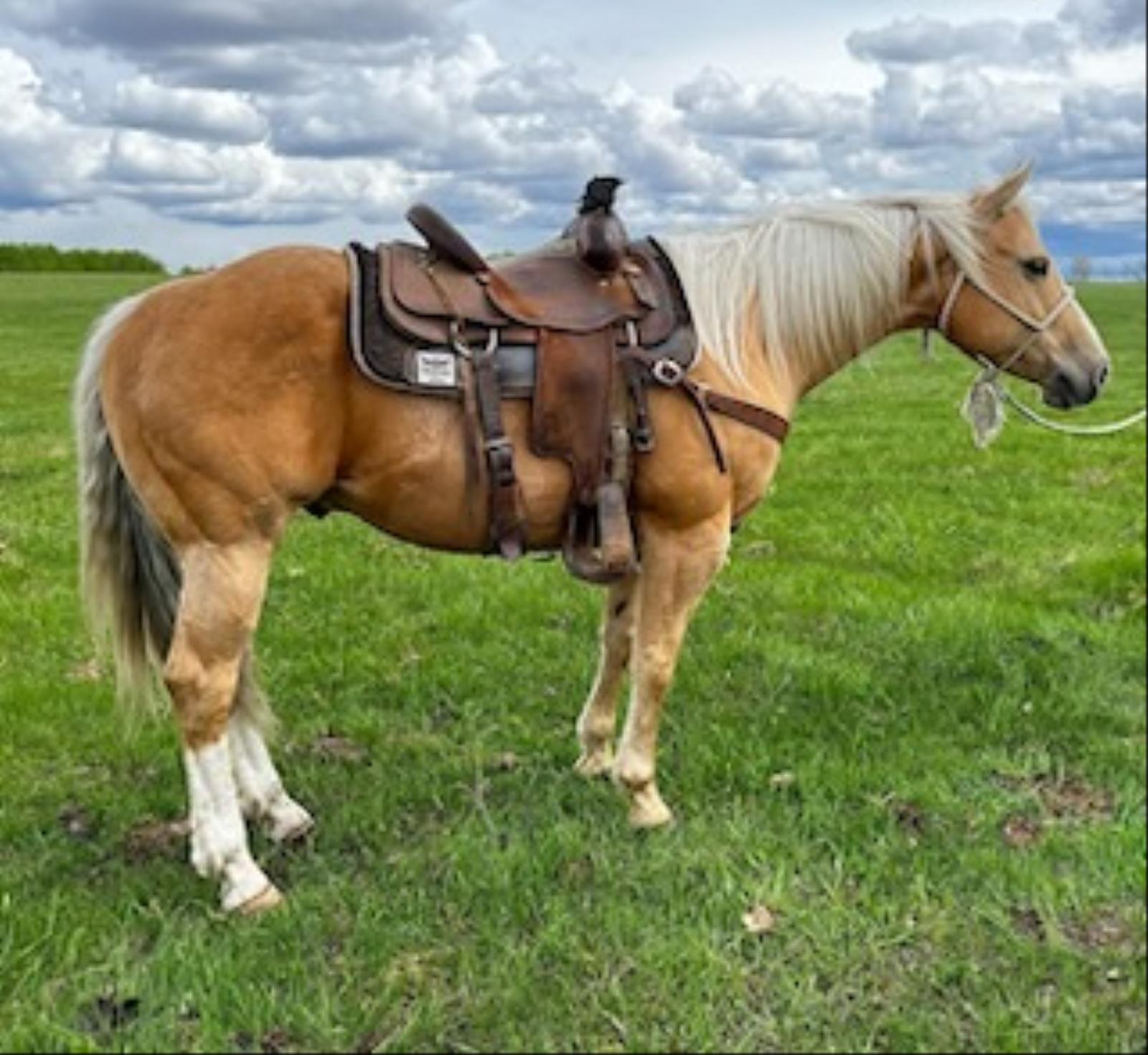 Rex is a stunning, shapey gelding standing at 14.2hh and 1050lbs. Rex has been used for all the ranch work; he's drug calves at brandings, been rode in the bush and ran yearlings down in the pasture. He's a jam-up little horse that makes our job easy.