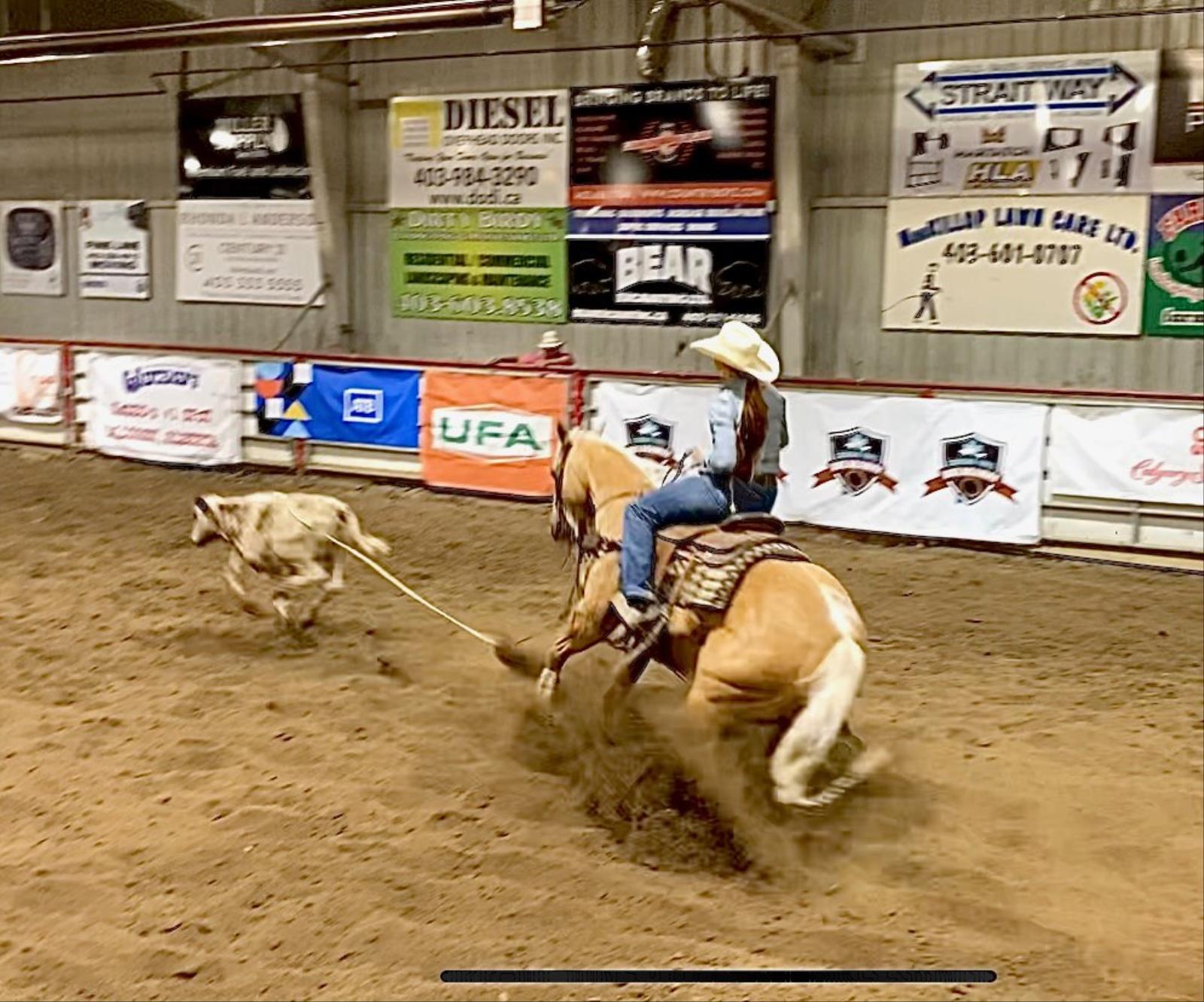 He's been hauled in the breakaway for the last year and has been seasoning nicely. He has lots of natural timing and a big stop. He's also one of the easiest heel horses we've rode. He's so honest on the corner and easy to see the feet on. He'll be jackpotted on till sale day!