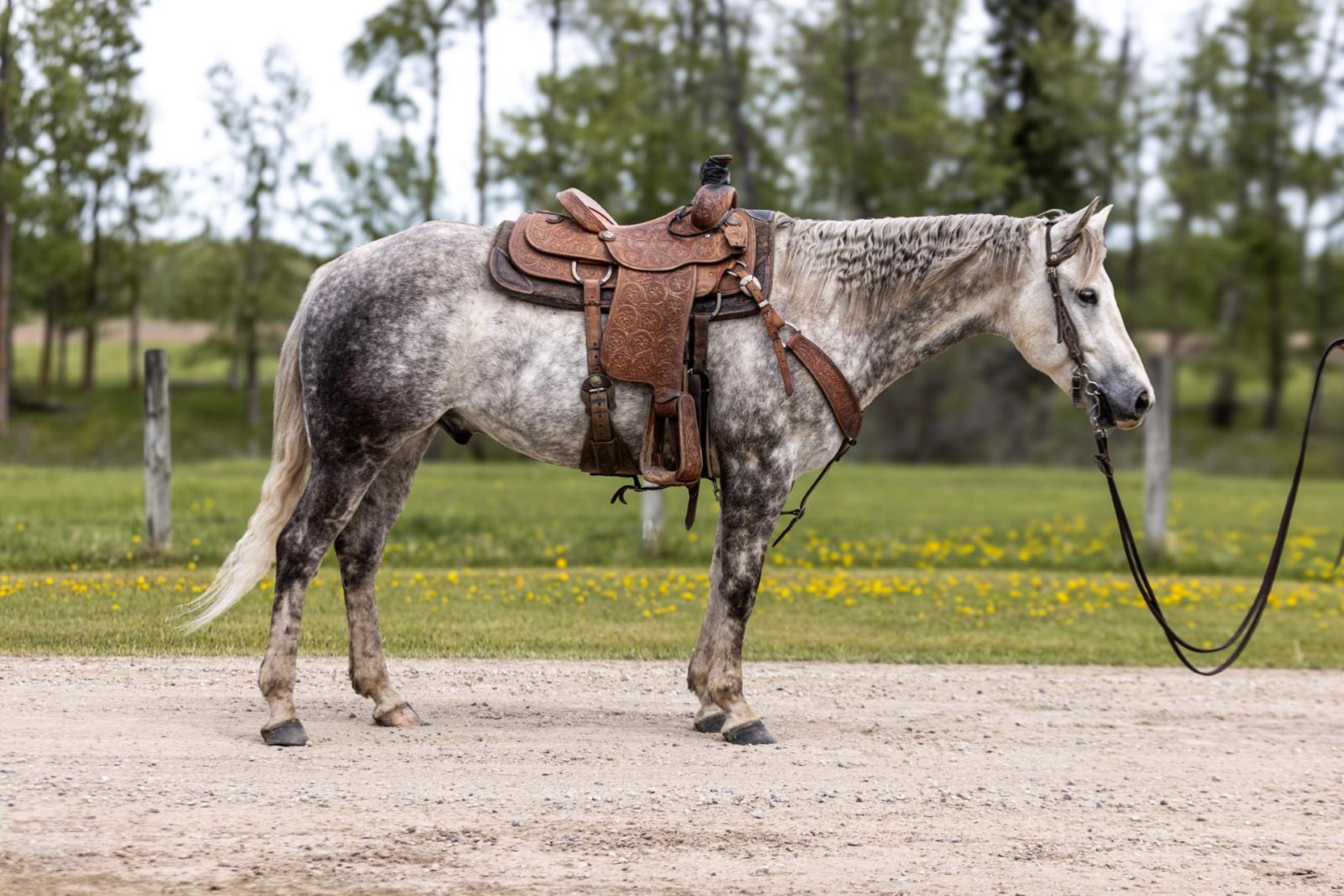 This 7 year old grey gelding is home grown. He has been used on the ranch to halter break colts, load out yearlings and drag calves to the fire. With his big hip and 15.0hh build he can make short work of any job you point him to.