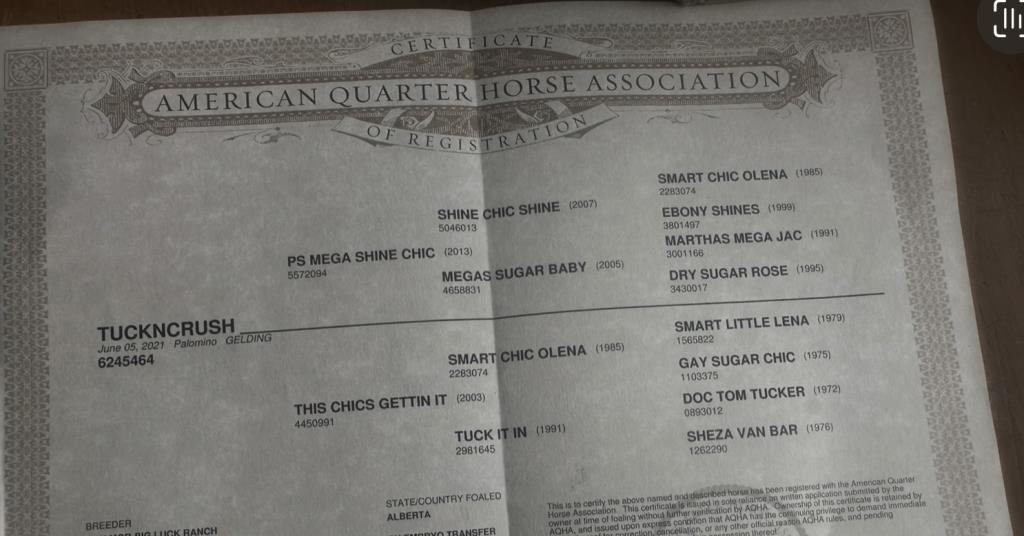 2021 gelding by million dollar sire PS Mega Shine Chic out of a Smart Chic Olena daughter. 10 months reined cowhorse training. Ranch rode extensively in BC, big stop, easily could still be shown in the cowhorse, ready to jackpot as a head horse. Quiet and easy to get along with. Same horse everytime. 15.1, sound, good to shoe X-rays available Located in BC