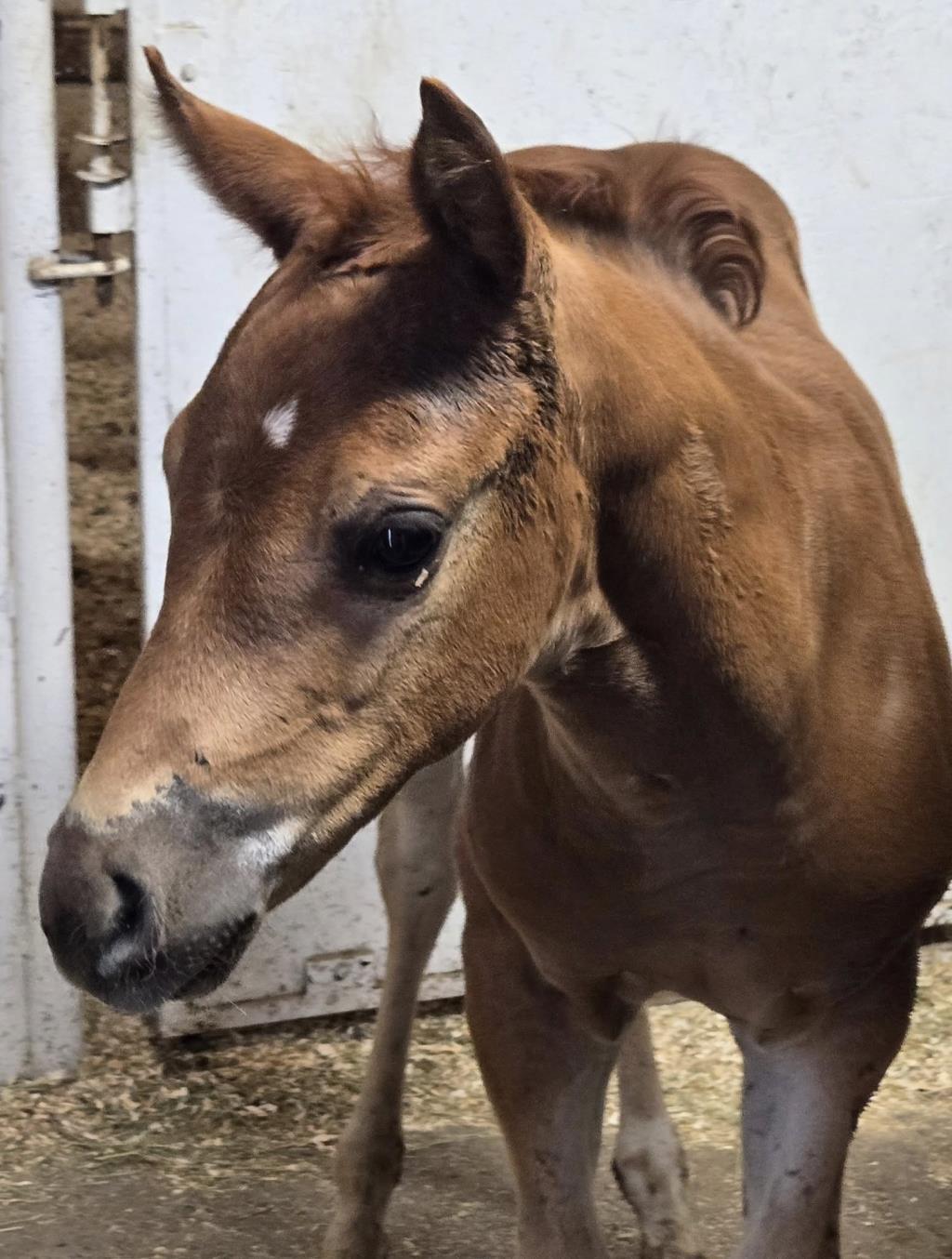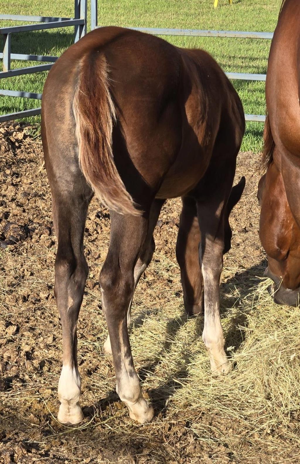 This filly is balanced, with correct confirmation, strong bone and good feet. She a sweet quiet temperment and wants to be your friend. . Easy to handle and likes people. Naturally athletic and a good mover with a kind eye and a pretty head.