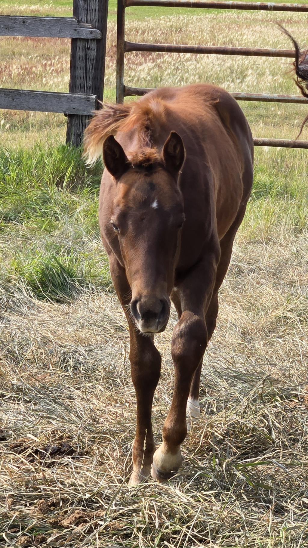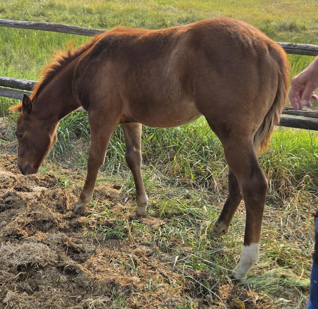 Good minded,. Correct. Pretty. Performance bred.This beautiful filly has the pedigree, mind and build to make a top prospect in reining, working cow horse or ranch versatility.Sired by Skeets Conquistador, a proven sire of money earners in reing, as well as being an NRHA WORLD CHAMPION and earning over $120,000.00himself. Out of our very good mare Mia Rima, whose oldest foal is a three year old, in training.