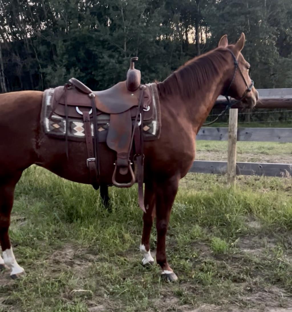 Bought her for our son - She is too much horse for him, he is not ready. She was started down south & is a finished cutter She would work for most people who desire a quiet well mannered ride with no issues. She is dead broke and well schooled with more whoa than go. Has cut and team penned and team sorted. She is willingly guided and quits when the rider quits. Needs front shoes due to heal bruising. Could use maintenace if wanting to ride longer or harder. Or make her into a broodmare She loves to work a cow, easy to catch, trim, load, no vices.