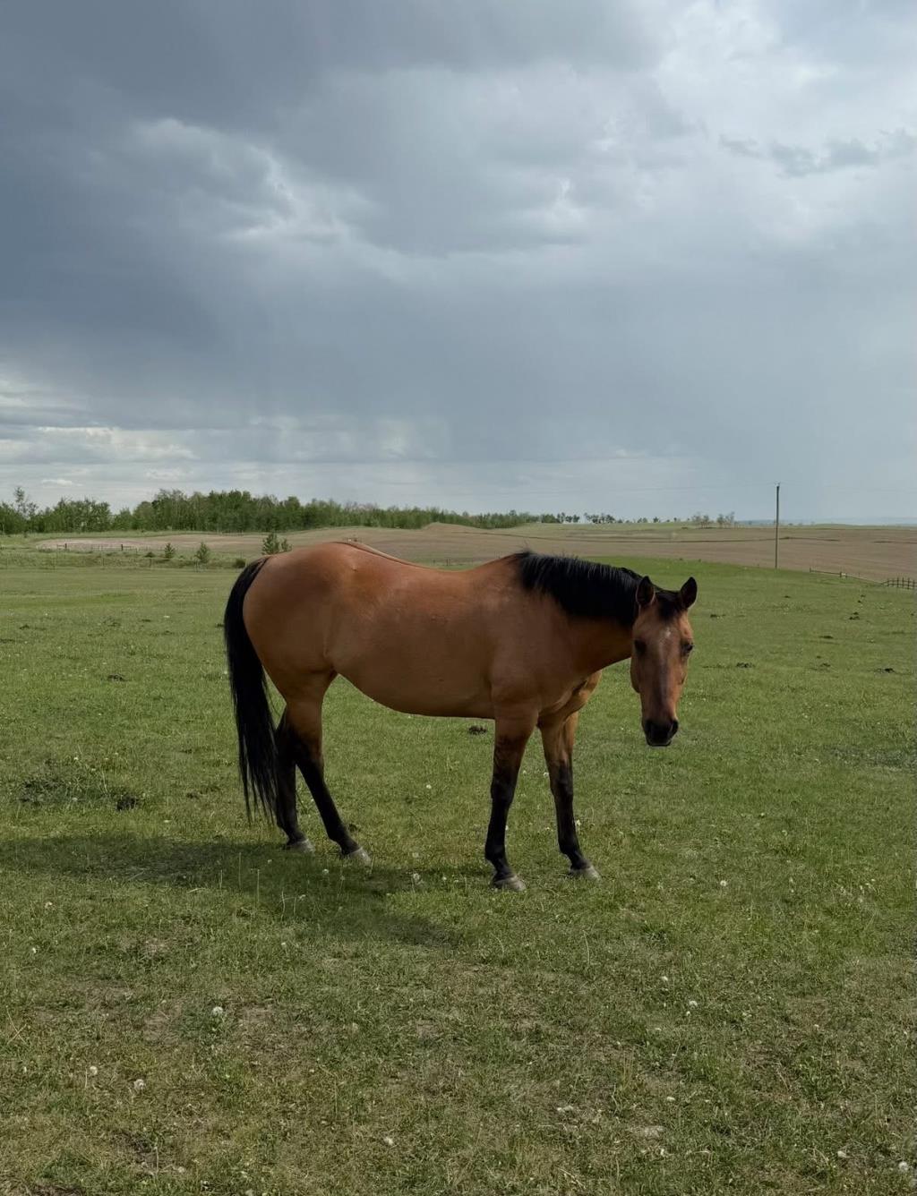 Armani With a heavy heart, I’m offering my best mare, Armani, for sale. This decision is through absolutely no fault of her own—life has simply gotten too busy, and she deserves more time and attention than I can currently give. Armani is far too talented to be standing around in the field when she still has so much to offer. Armani is a seasoned, well-rounded mare with a strong resume and an even stronger work ethic. Prior to coming to me, she was a true all-around ranch horse with extensive cattle experience as well as team roping. With me, she’s primarily been used for team sorting, but she also knows the barrel pattern and has confidently carried trick riders at a stand—making her a potential standout for a young rider interested in trick riding. She spent four years on the Ponoka Stampede Drill Team, giving her plenty of exposure to loud arenas, crowds, music, and heavy flag work. Armani has also been a trusted partner in multiple rodeo queen competitions, where her calm, composed demeanor and solid flag work made her a favorite. This mare is extremely broke and responsive, with smooth transitions and excellent feel. She’s soft to leg, rein, and seat cues, making her a pleasure for riders of all levels. Armani is also very cowy—an ideal partner for anyone looking to learn or earn in cattle work. Whether you want slow and steady or fast and snappy, she’ll match your energy. She stops and turns on a dime and truly gives her all every ride. Armani is the definition of a versatile unicorn—safe, talented, and full of try. She’s ready to go in any direction and will shine with someone who can give her the time and purpose she thrives on. She is a 2008 model but she surely doesn’t show it!