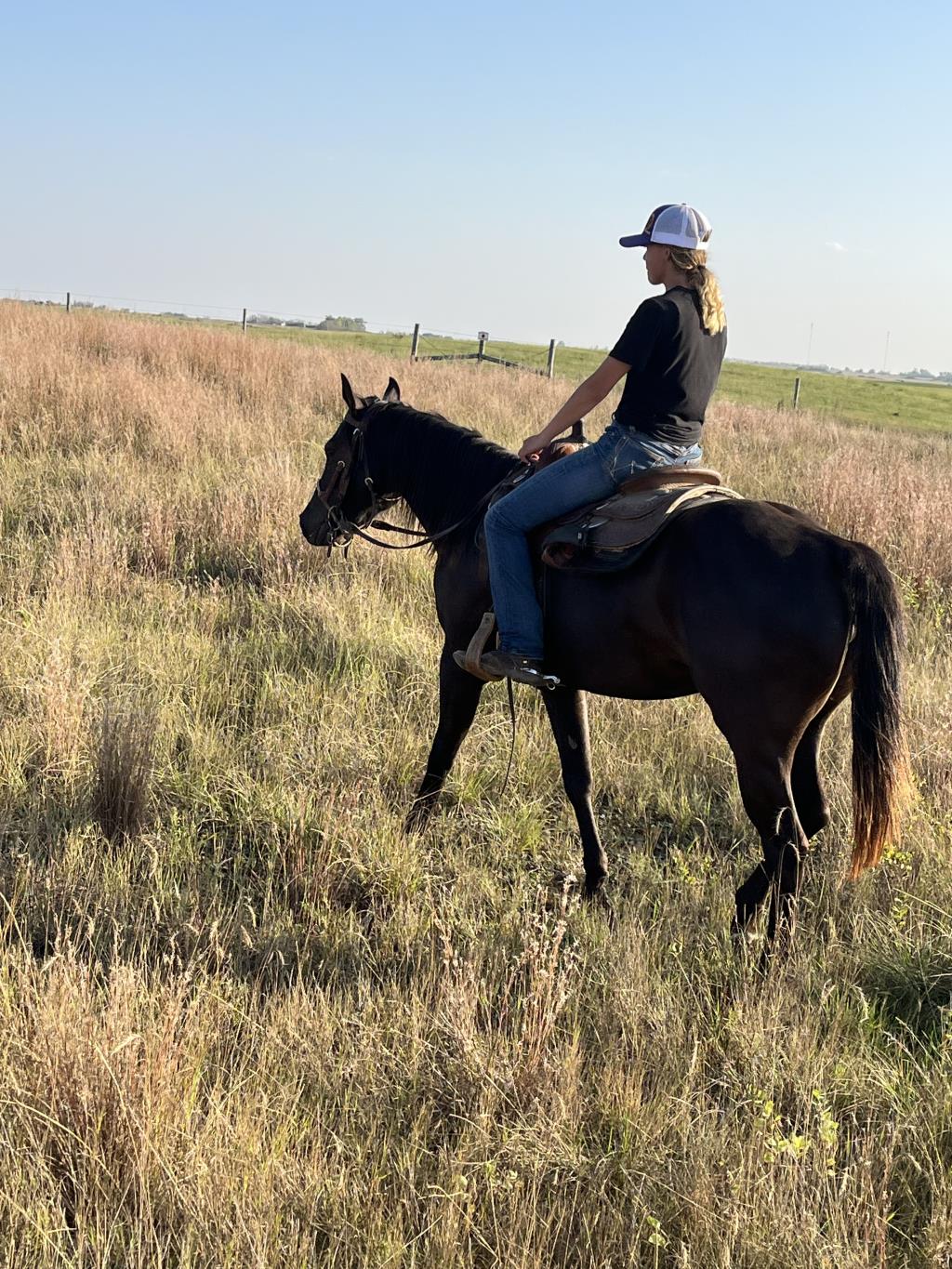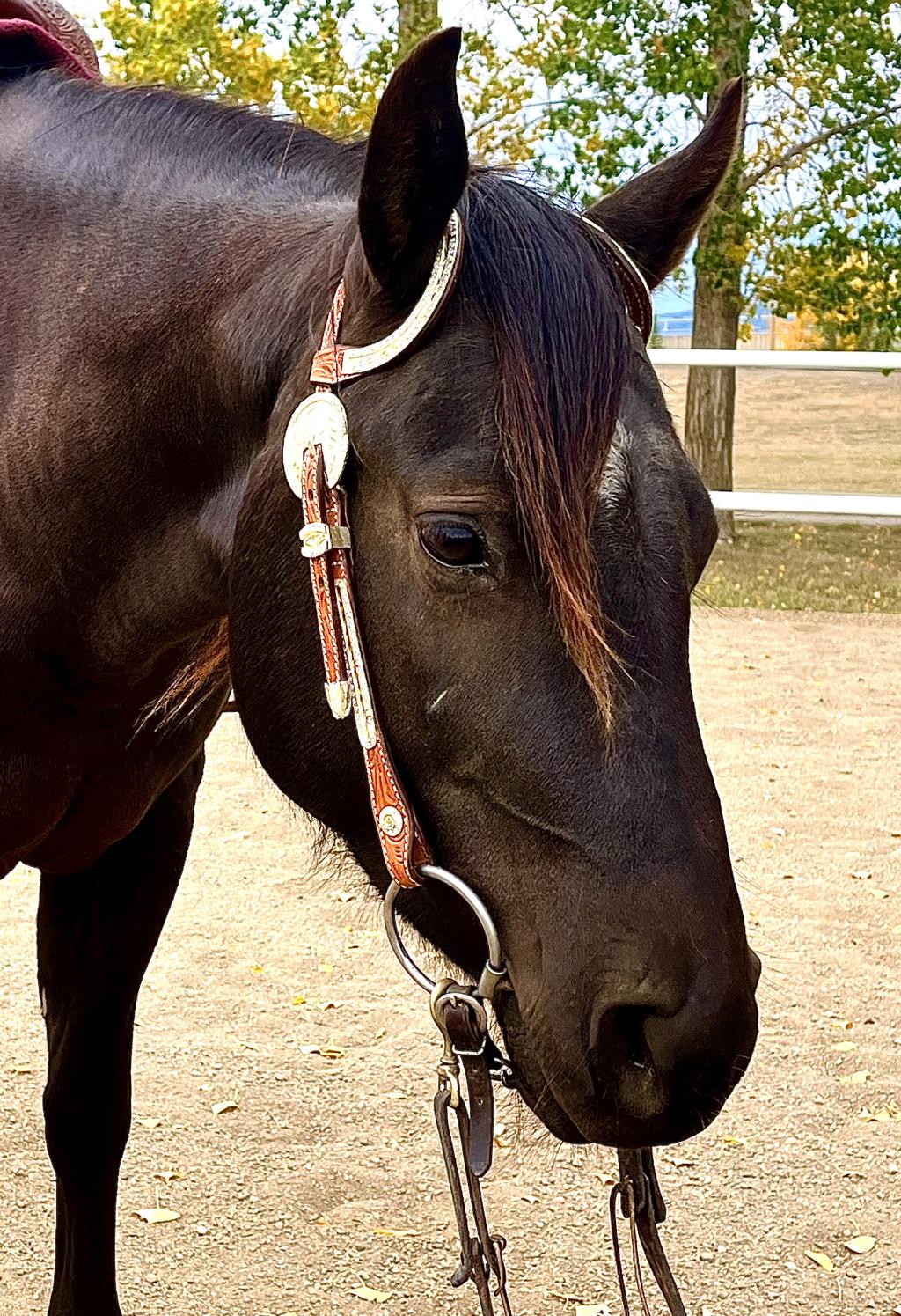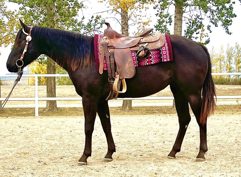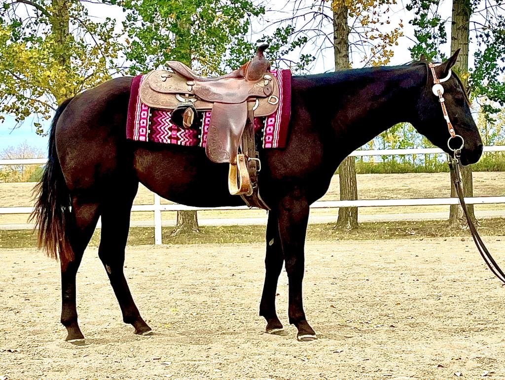 Kittyhock 3 year old mare with AQHA pending registration is lightly started under saddle and already demonstrating the same talent as her sire with a natural disposition and stopping ability. This mare has been in training with Sunset Performance Horses in Moose Jaw, Saskatchewan. Kittyhock absorbs new experience effortlessly including trails, water crossing, logs, hills, dogs, trailering and so much more.