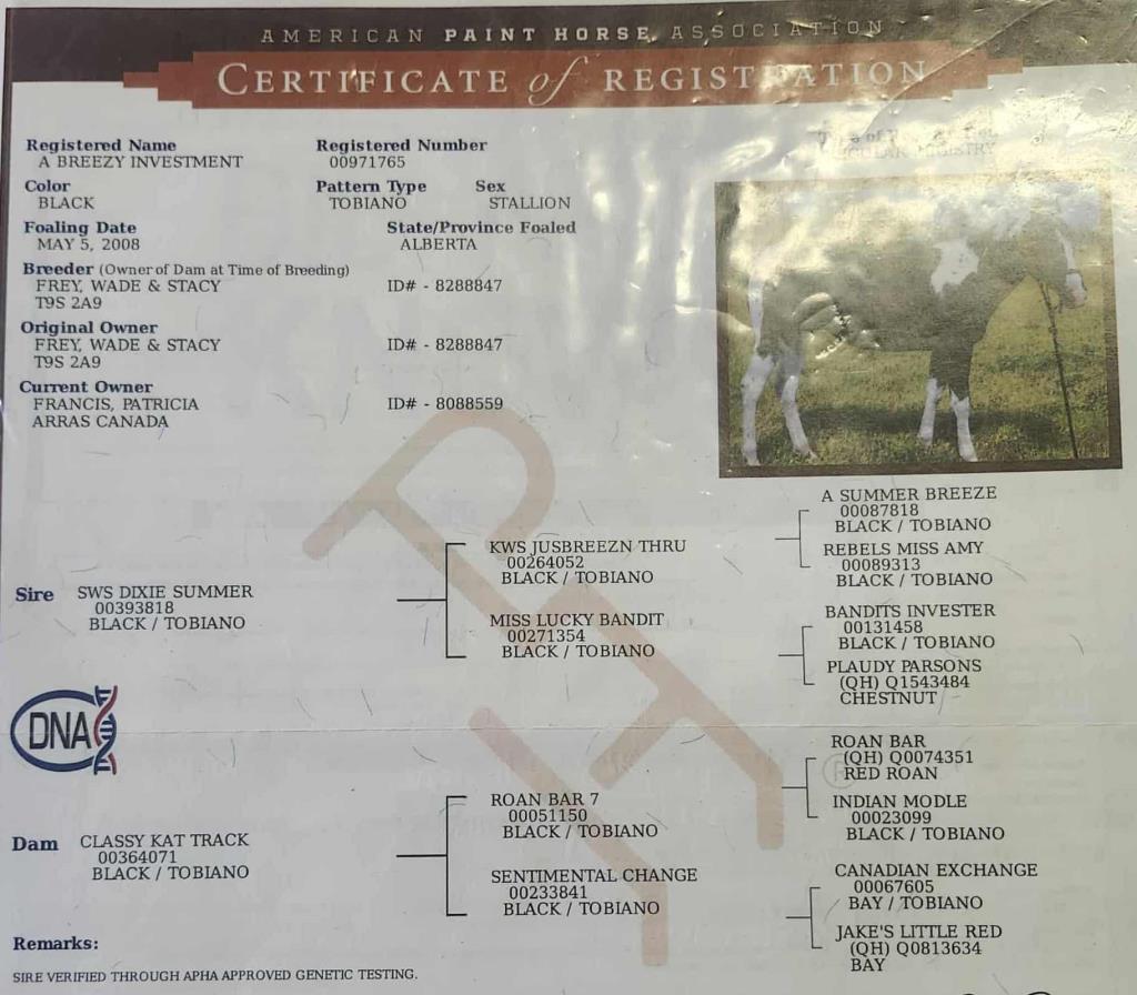 | This horse is currently located at: - Dawson Creek, BC, CA. | ||||||||||||||||||