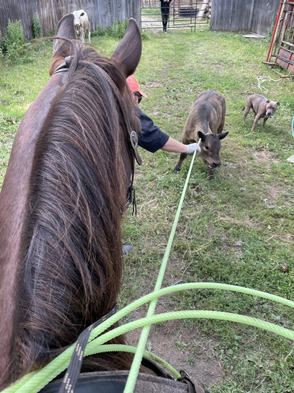 Baloo - 2015 chestnut gelding standing about 15hh. Well bred with a damn that has LTE of $49,000 and His sire is former NCHA horse of the year Reys Dual Badger with LTE of $312,000. If you want a gelding that is very cowy, athletic, sensitive but safe then look no further. Baloo has a resume that matches his breeding. He was started professionally as a cutter as a two year old and He’s a great non pro horse to take to cuttings. Baloo is well rounded and sure to not disappoint in the arena. He has earned money in cattle penning, cattle sorting, ranch riding, gymkhana and has won a few buckles in the extreme cowboy challenge. He’s been in the branding pen and has been started as a rope horse on both ends but would best suit a break away horse or head horse. He’s quiet in the box, big stop and has roped the dummy tons and live cattle. Baloo has halter broke lots of babies and ponied them out. Hes packed and rode into the mountains, travelled across the country on many hunting trips, tons of trail rides with any level rider. He is a steady Eddie type, consistently great. He loves water and crosses obstacles without worry. Loads easy, ties perfect, good for the ferrier, honest kind with no buck. Same horse each ride and you can pull him out of the pen and just go. Kids and beginners have ridden him, he’s kind, safe but able to turn it up on a competition pen. Located in Vernon, Hauling available