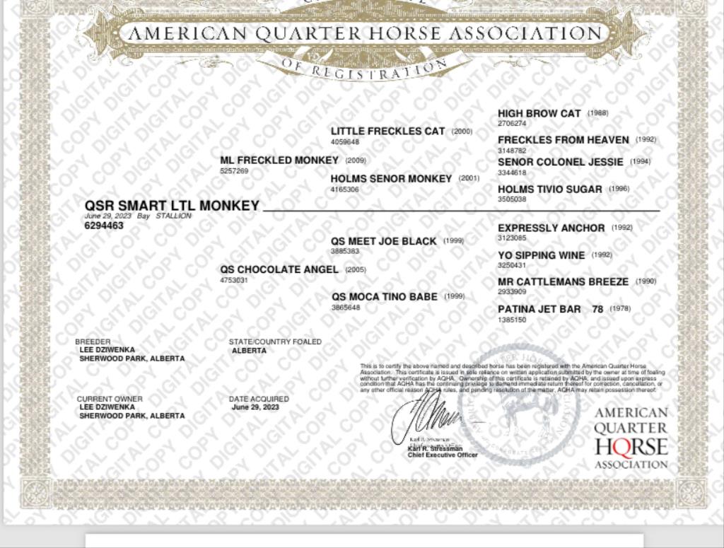 This horse is currently located at: Goldbine Farms - Ardrossan, AB, CA.