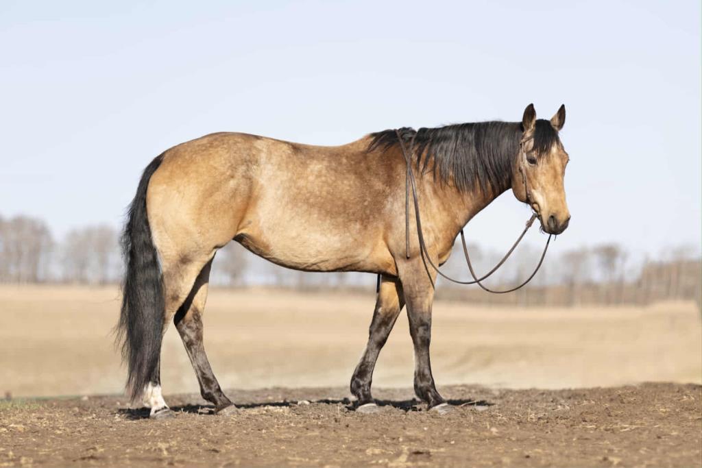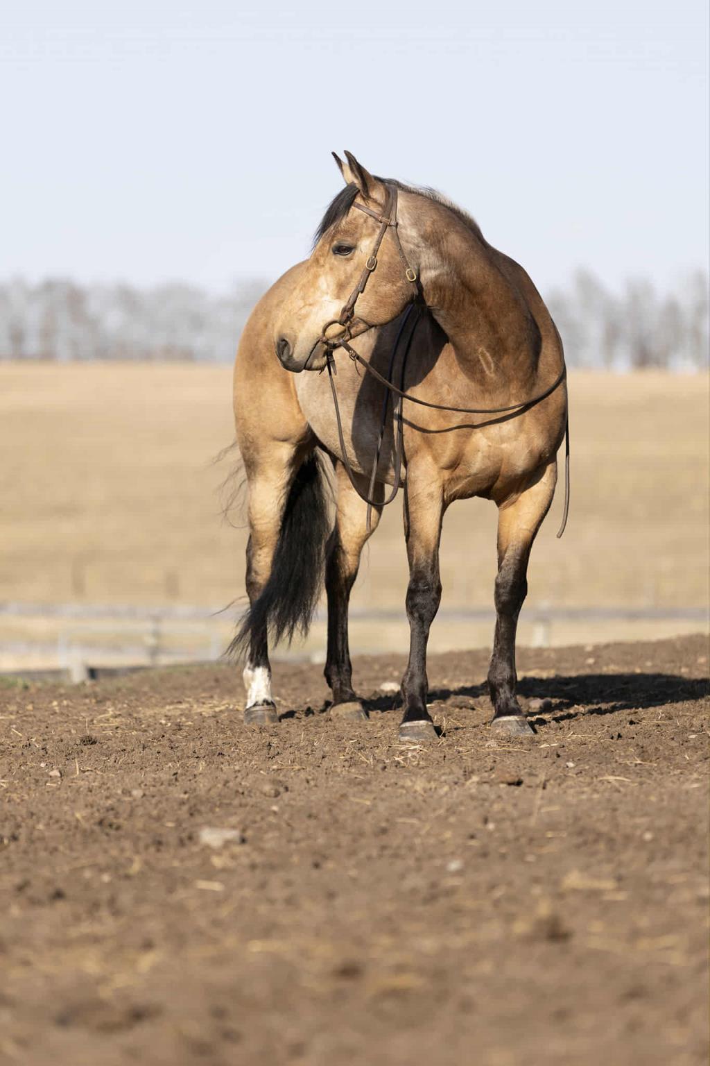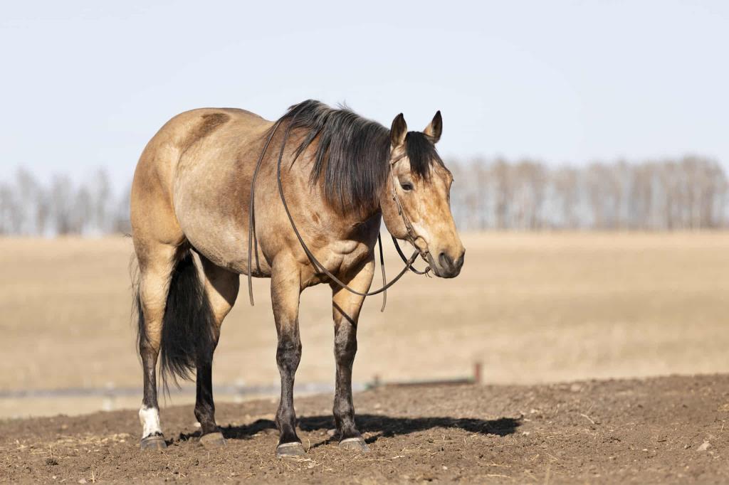 Bucky is built like a tank. she is safe and was used as a husband horse. She is great out on the trail and is one of those horses who can have time off and is the same when you return back to her. She is great for the farrier, loads and hauls well. She has over a year of professional training throughout her life. She has been taken to a penning and did well. Has worked buffalo as well as cattle in her younger years. She is good with ponying colts. Would make a Great ranch horse. would work well for any intermediate level rider. She is a forward solid mare. She stands solid 16hh and weighs a easy 1250 lbs. is 12 years old. call Melissa 403-352-3066