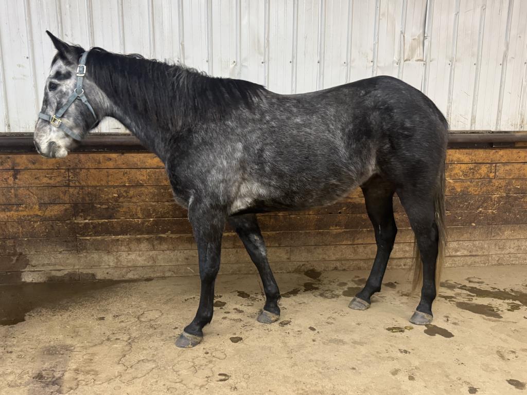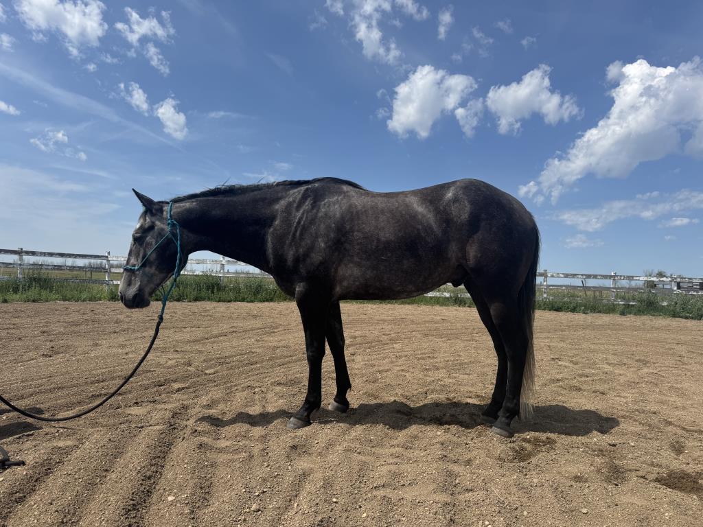 Coming 6 year old gelding that will do best in a ranch or possibly barrel home. We purchased him with 30 days riding late summer of 2025 and were hoping with more time on him through the winter he would be a move up horse for one of my teenagers, at this time he's still too strong and too quick so is better suited to something else. He did one more month in the fall out on the trails and is completing 60 days now in Melfort, Sask. He prefers outside riding over indoors, and is still quick to startle with distractions indoors. He's a powerful horse with a ground covering trot and a lot of go. He is up to date on vaccines, and is getting a fresh trim Feb 7th. He can stay in training through February or I can deduct it from his price if you'd rather take him sooner. His pedigree speaks for itself and the Cross Bar horses are known for being able to work all day. A few seasons out putting on miles and he will make a great ranch horse, or if someone wants to turn some barrels with him he is quick. Priced for a quick sale, he will stay in training until he sells. First photo is current February 2nd 2026, more photos and videos will be added the week of February 10th.