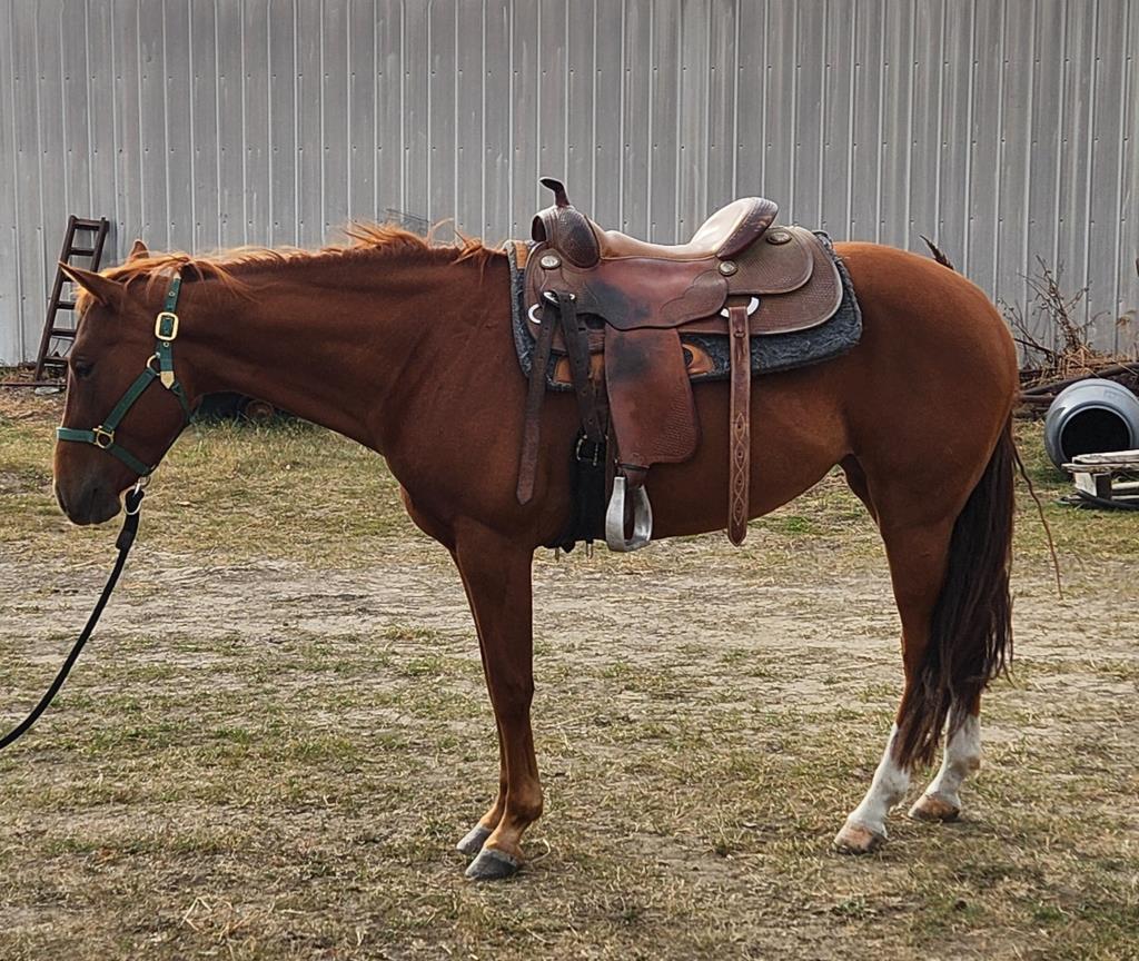 for your consideration. Performance bred Registered AQHA mare 5 Panel N/N (Through Parentage) 15 HH Excellent ground manners, stands tied Ground ties, easy to catch, load, trim, lunge, round pen Has been ridden inside and outside with some pasture and trail riding. Smooth mover - W/T/L/S/B UTD on feet/worming/teeth Requires no maintenance, Easy keeper No buck/bolt/rear Not herd bound Respects fences including electric fence She is ready to go into any discipline you want to take her.