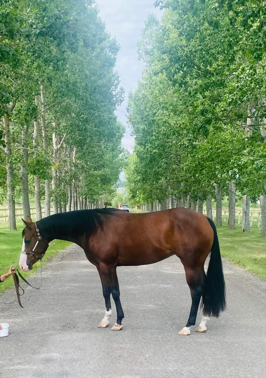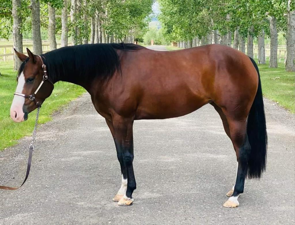 Whats Stopping You (Lola) 2020 AQHA/APHA Bay Mare, (Overo, minimal white) by HF Mobster and out of Pep E Revolution,(Einsteins Revolution x Lil Ruf Peppy Chex x Lil Ruf Pepy). Champion Pedigree. Stunning, elegant, correct and ready for the show pen. 2 years professional trainng and has been shown lightly in her 3 year old year. Lola will stay in training until sold. Great circler, easy lead changer, nice spins,and very trainable. Sensative, kind and patient. Comes out everyday to work. She has not been pushed in her training and has solid maneuvers. Sensible minded. Well balanced, great confirmation, pretty head, and big hipped. She is 15 hh. Very easy to handle with personality plus! Super flashy mare that would make a great Ranch Riding/Ranch Reiner mare. Would make a fabulous broodmare down the road. Up to date on teeth, deworming, and vacinations. Great with trailering, bathing and the farrier.Lola is on a maintenance program..