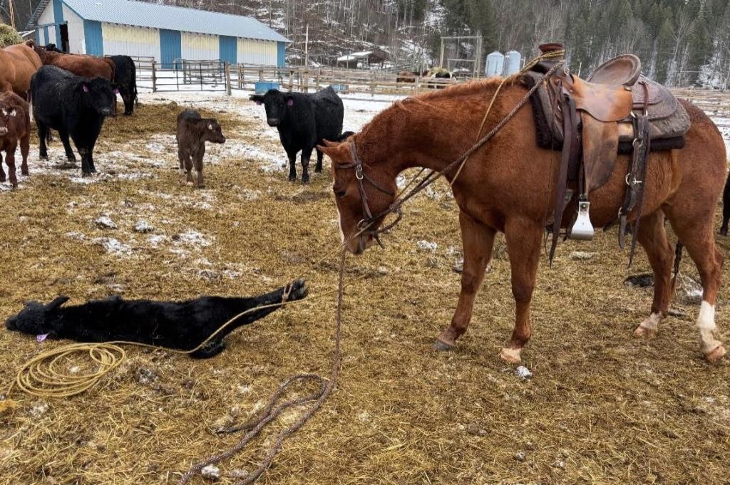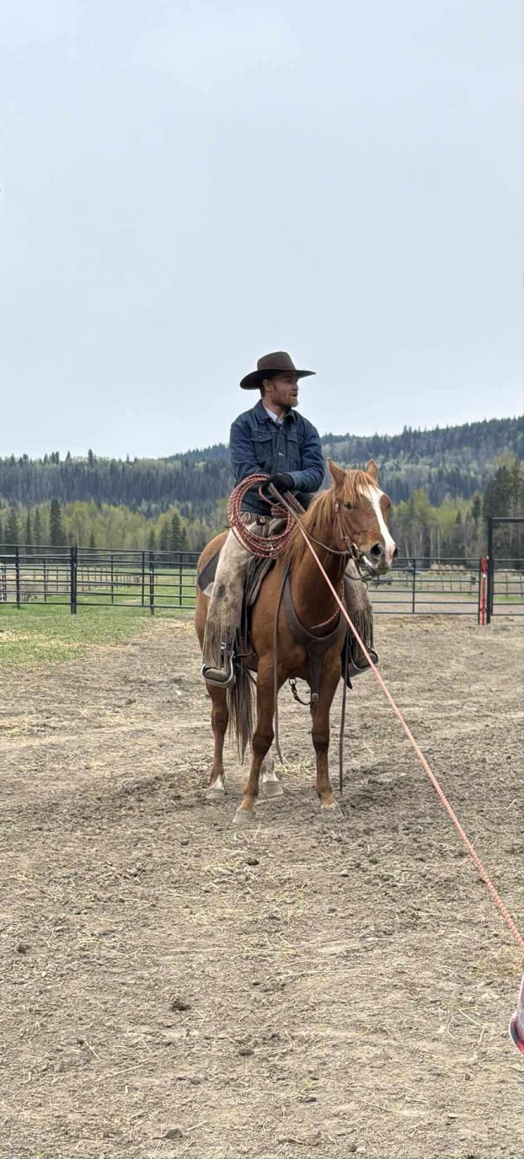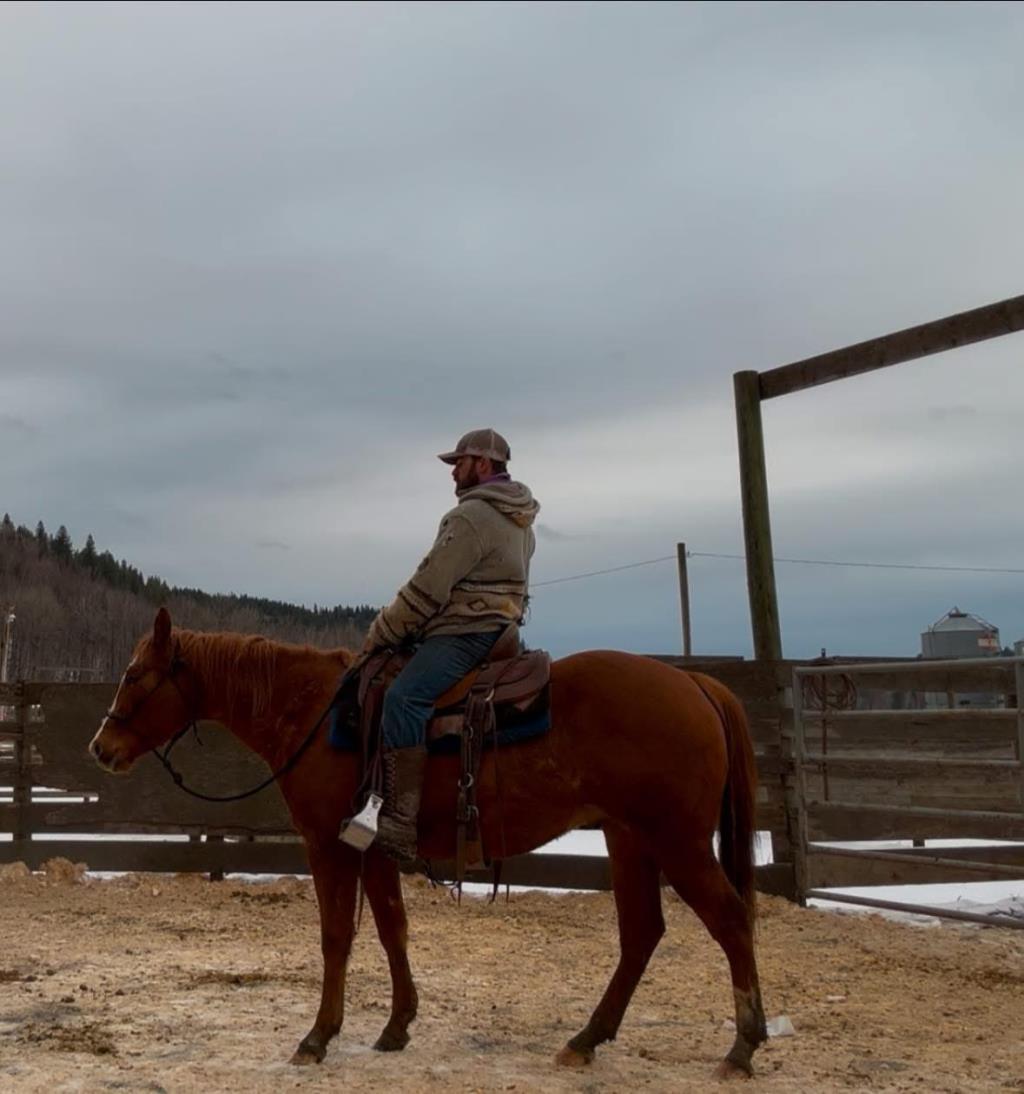 Stanley 2022 AQHA GELDING Stanley is a great prospect. He is good at everything he does. I have pasture doctored cows on him, paired out, taken him to team ropings and roped a few out the box on him. He ponies colts, crosses water, logs etc. He is forward going to work type of horse. Easy to catch nice to shoe. Quiet and great temperament . Does not miss a beat after time off, he had five months off and rode away like the day he was put away. He has a tonne of heart and will try all day long . Pulls very strong on the horn. First two times roping are pictured here. First to tag a calf second to treat a cow. Shows to be good and cowy and will track up on one to get it roped.