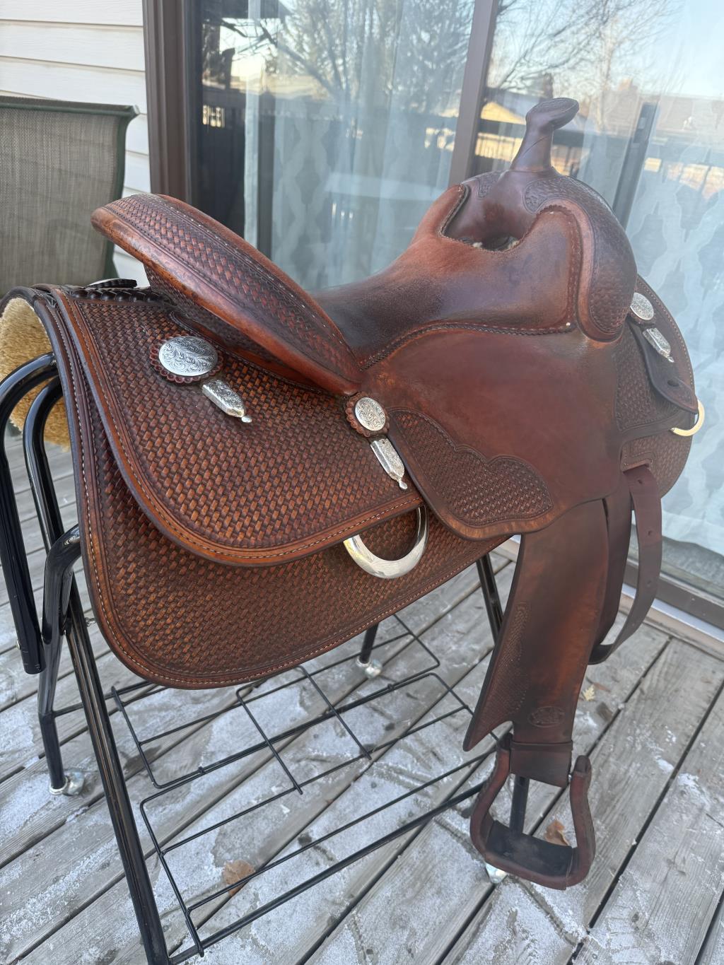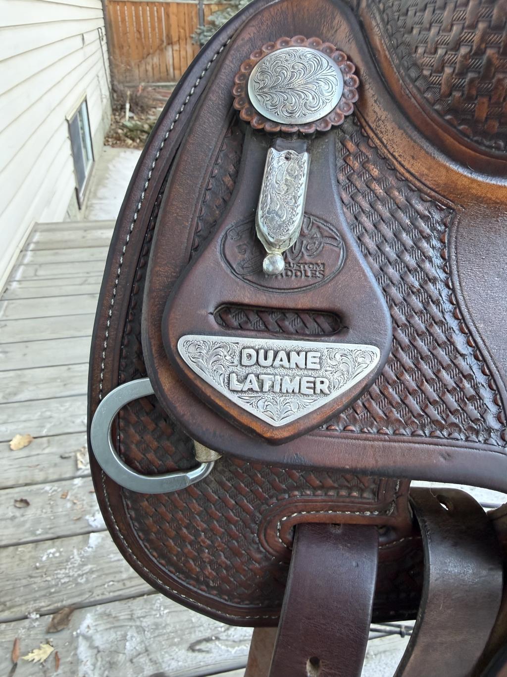 Beautiful Bob’s Custom saddle by Duane Latimer In very good condition and extremely comfortable to ride in. This saddle has fit every horse I have put it on. It is built with double rigging to help distribute the weight for an even pull where the cinch attaches Well cared for, clean, and ready to go!