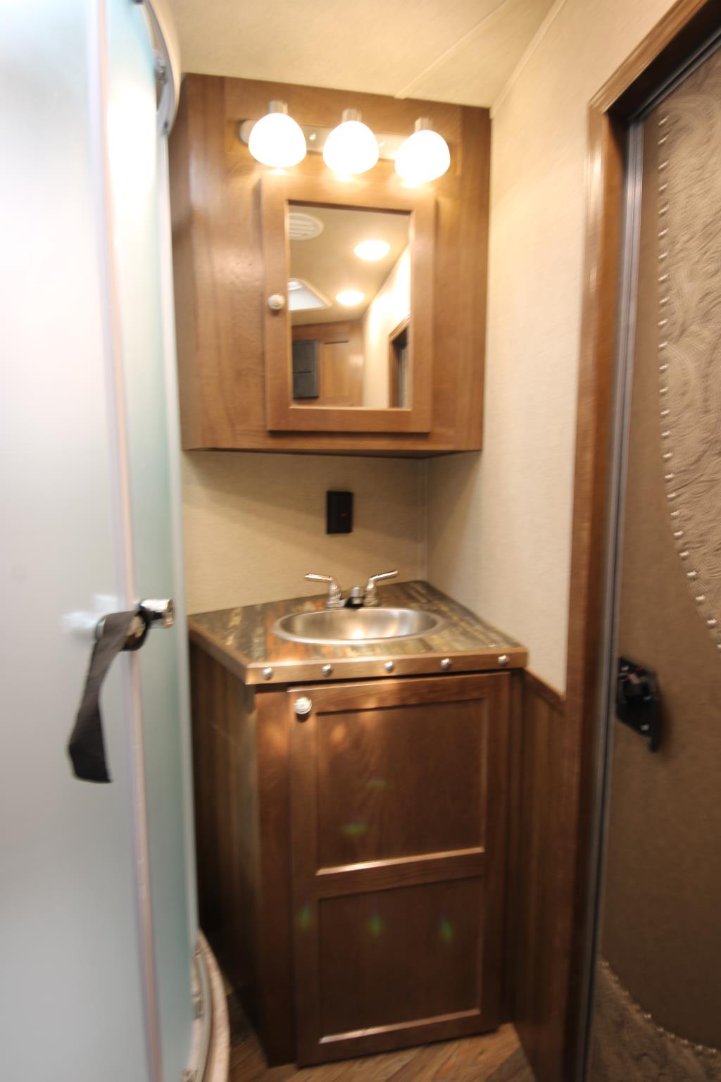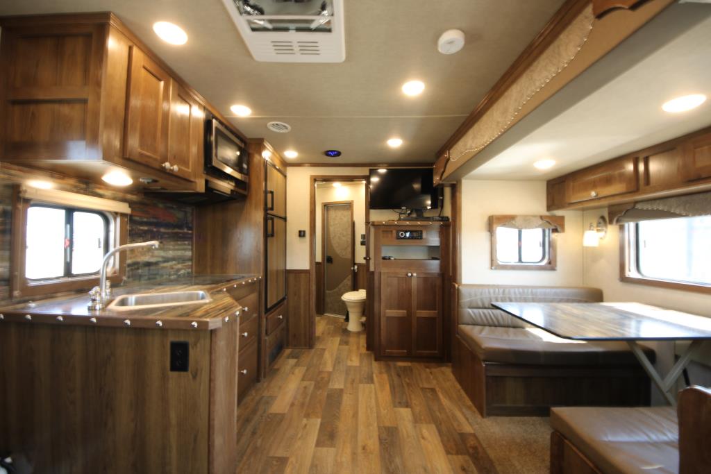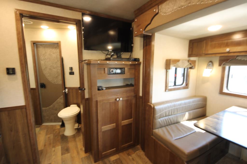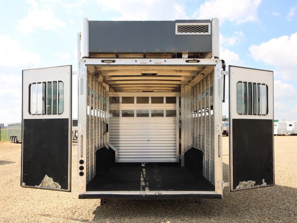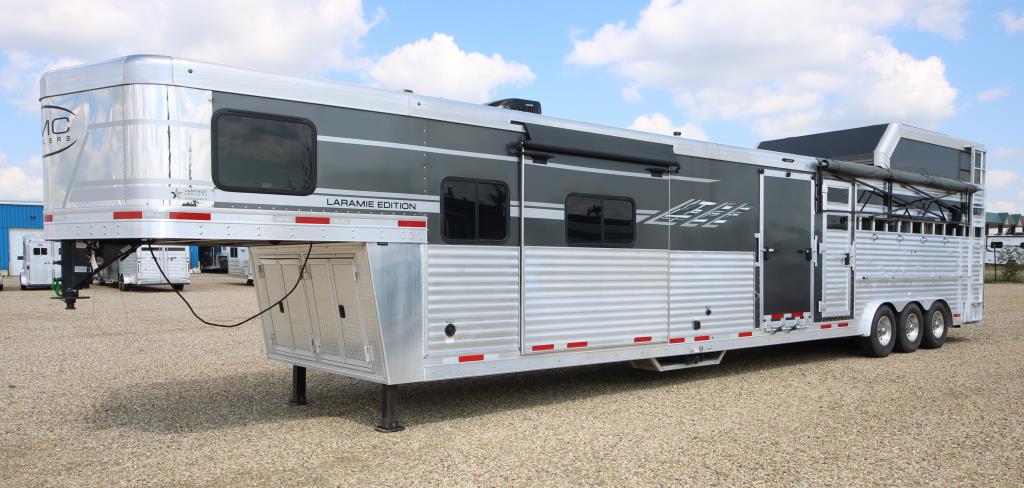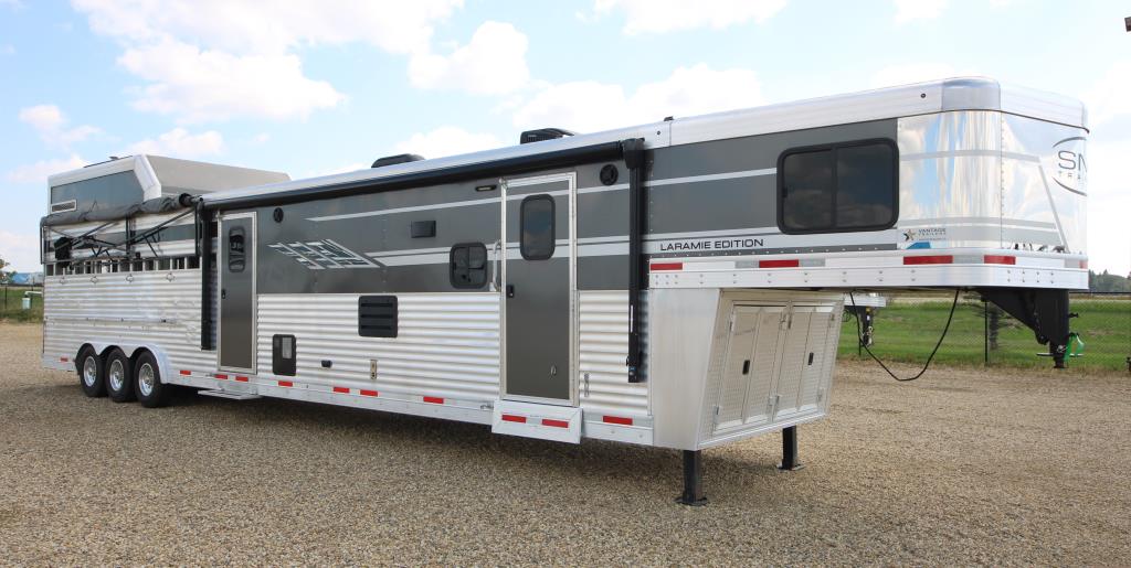 Stop in and check out this newly consigned 2022 SMC Stock back living quarters trailer, it is fully inspected and ready to hit the road! This trailer features a spacious living quarters with a dinette and couch as well as convenient step access up to the queen size bed. There is ample storage space throughout, including a wardrobe closet to hold all your travel needs. The kitchen has ample counter space with a sink, recessed cooktop, convection microwave and overhead fan, as well as a 6 cu fridge/freezer. The bathroom offers a shower, toilet, vanity and overhead cabinet as well as easy door access to the mid tack. The stock back is equipped with a centre gate, plexiglass inserts, individual vents, rubber mats and an escape door. The mid-tack area comes with a saddle stand, ample bridle hooks and a brush box. There is also a ramp for easy loading and a walkthrough door to the horse area. This SMC Laramie Stock Back trailer also includes a haypod with platform and a 3.6 LP generator w/remote. Stop by our Lacombe location to have a look, or give us a call at (403)782-5500. Don’t forget, we offer financing and consider trades!