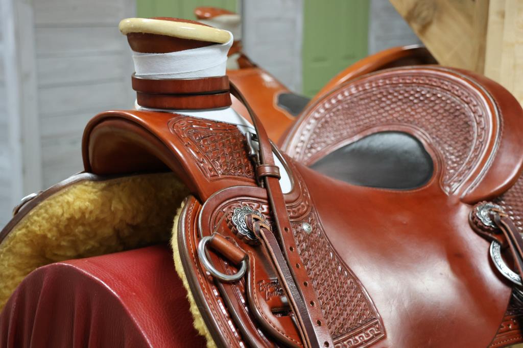 15.5 Experience Leather Lady Wade for sale. Beautiful Herman Oak chestnut leather. Timberline tree. 6.75 wide gullet. FQH bars. Jeremiah Watt trim. Black inaly. Diamond tooling, San carlos border. I love this saddle. It's looking for a home. 403-586-1734.