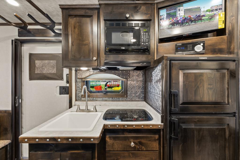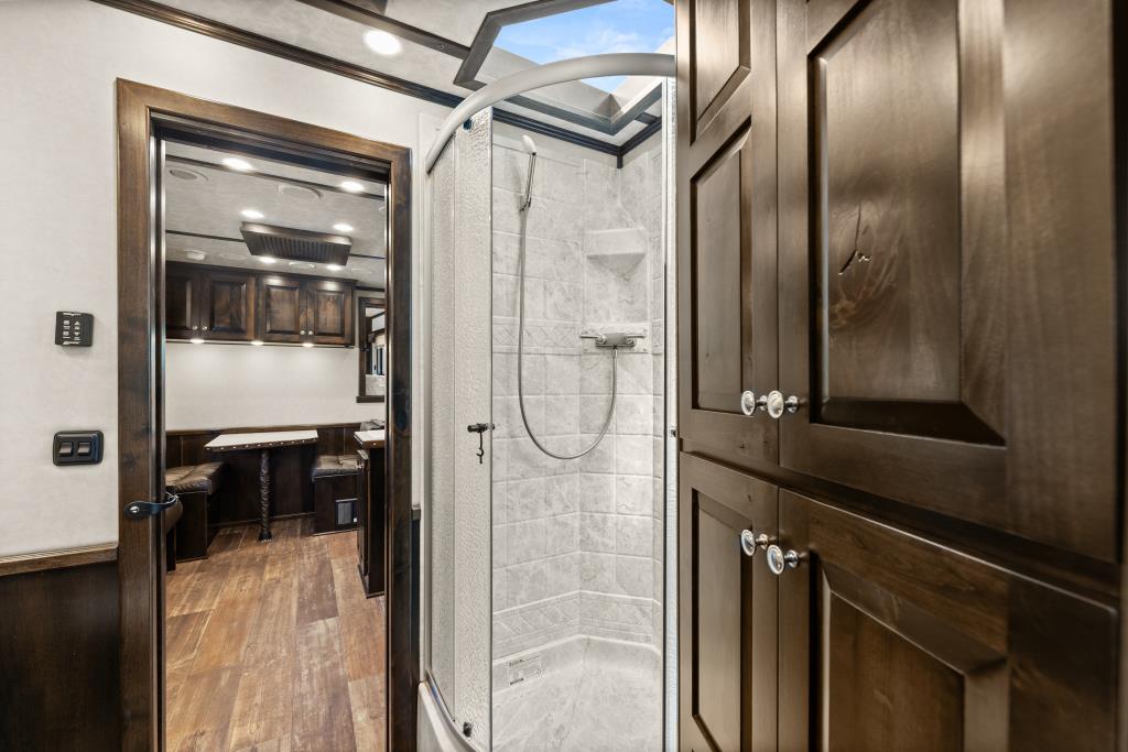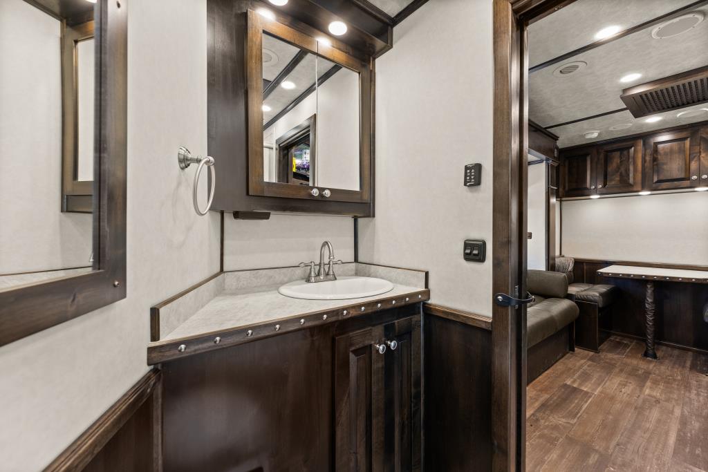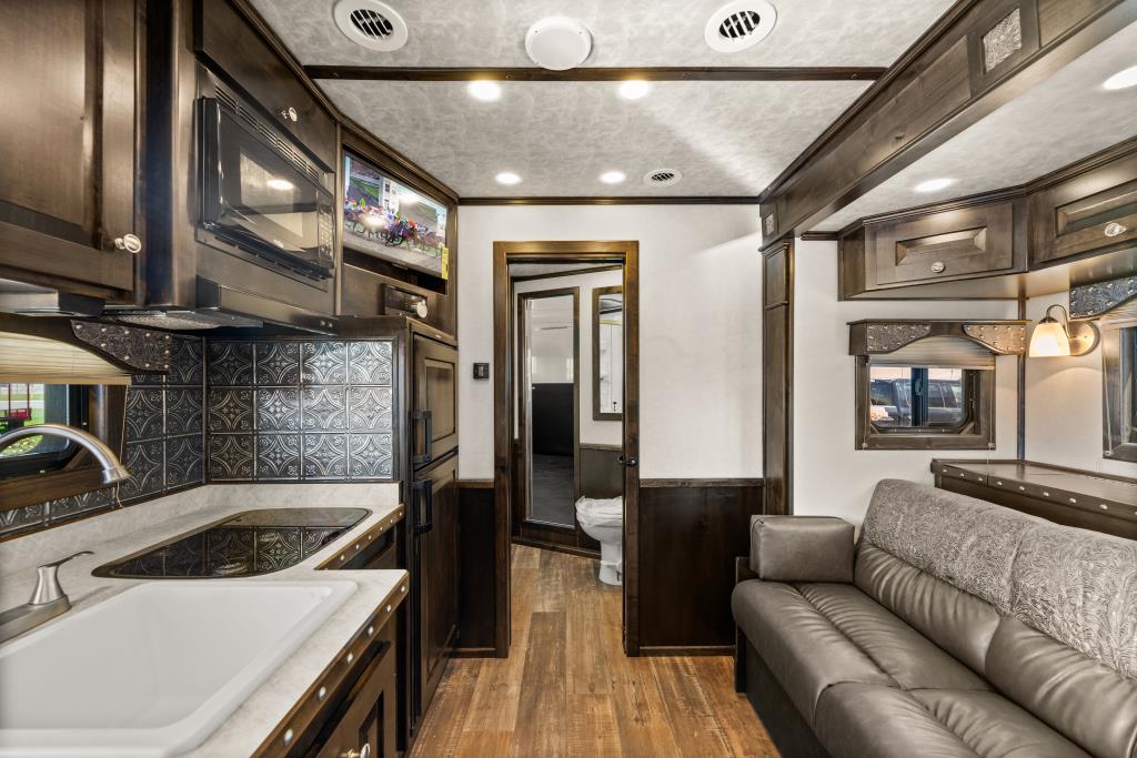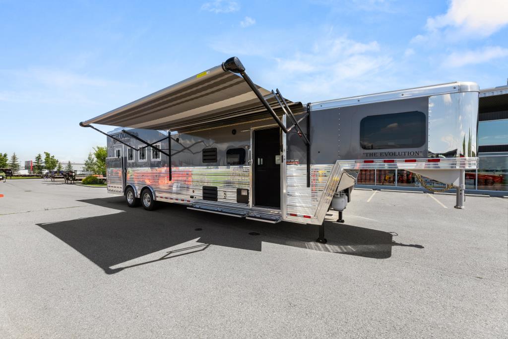 As the new exclusive Bloomer dealer in Canada; Tractorland Trailers is proud to present this immaculate 2025 Bloomer Trailer with Trail Boss Living Quarters. It is the perfect blend of top-tier comfort, thoughtful design, and durability. This rig is built to impress and perform. Starting with the special edition, charcoal colour, this trailer STANDS OUT! This four horse, 33’.4” unit with a 13’.11” short wall has all the room you and your traveling partners could ever need! Spacious & Comfortable Living Quarters • Queen master bed in the gooseneck • Sofa bed in the slide-out • Dinette converts to a bed, offering generous sleep capacity • LED Smart TV on swing arm & integrated AM/FM/CD/DVD sound system Luxury Bathroom Amenities • Full-size shower with skylight • Large vanity with second mirror • Toilet • Floor-to-ceiling closet for ample storage Fully Equipped Kitchen • Full-size refrigerator • Microwave • Two-burner LP gas cooktop • Range hood with vent • Large sink with workspace for meal prep Convenience & Tech • Onboard generator • Automatic awning • All systems controlled from inside the LQ for maximum ease and comfort Equestrian Features • Side load with ramp for your horse’s safety and comfort • Back tack room for easy access to tack and grooming gear • Under manger storage for efficient organization of feed and supplies. This Bloomer is built to deliver top-tier performance without sacrificing luxury. Ready to hit the road in style? This trailer is ready for you. Please see attached photos of floor plan & LQ details. Shipping can be arranged anywhere in North America. Please call/text Scott Schiffner for a quote / more information. 403-901-7090