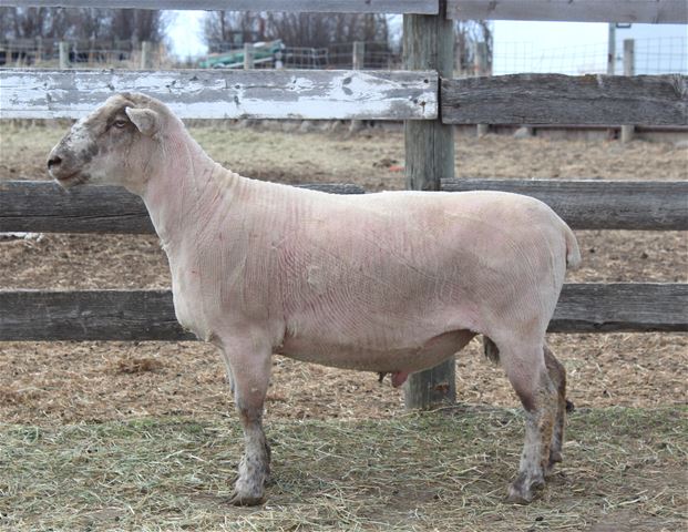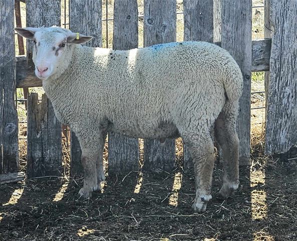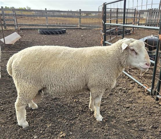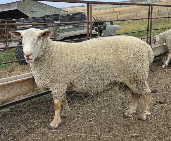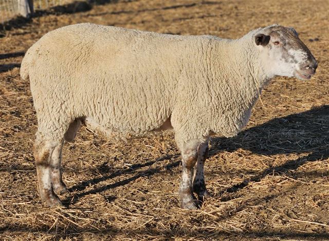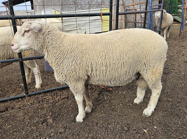 Single AI-sired ram sired by the foundation ram Canadian Arc 559X, and a grandson of two really good sheep: Alice 333A who was always a favorite, and Clovis 470C who went on to be a very good ram in other flocks. This is a nice, compact, heavy muscled ram with a very laid-back temperament! As he matured, he just filled out non-stop, and has become simply a tank. If you could keep him still enough, you could safely set your beer down on the table of his back. His scrapie genotype is RR, and he is the only RR of the 2019 559X sons. I have used this ram many times, and am very happy with his lambs. He had a bit of a rest last year, but he had lambs last year that turned up as yearlings in the Badlands Spring Select, as well as the 2025 All Canada Classic.*UPDATE- his daughter was the Champion Canadian Arcott ewe in the Classic, and sold for $2300.**