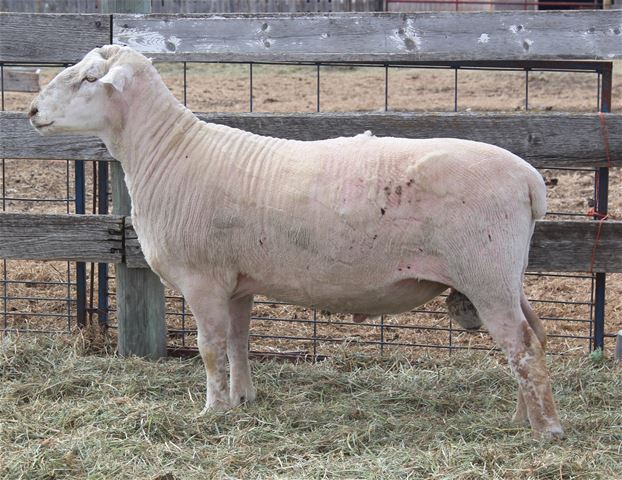 An AI-sired twin out of an AI-sired ewe, this ram and his twin sister have the most unique pedigree, having the first-generation ram Polycott 551Y as their sire and the foundation ram Canadian Arc 559X as their grandsire. In other words, this ram is 3/4 foundation stock, hitting the reset button. Going back on his dam's side to the old Sawyer C 76X ewe is an added bonus.