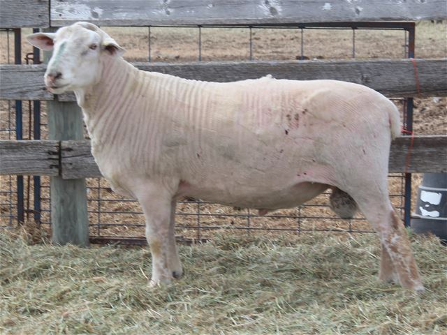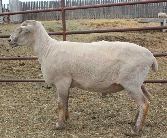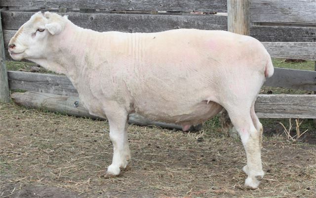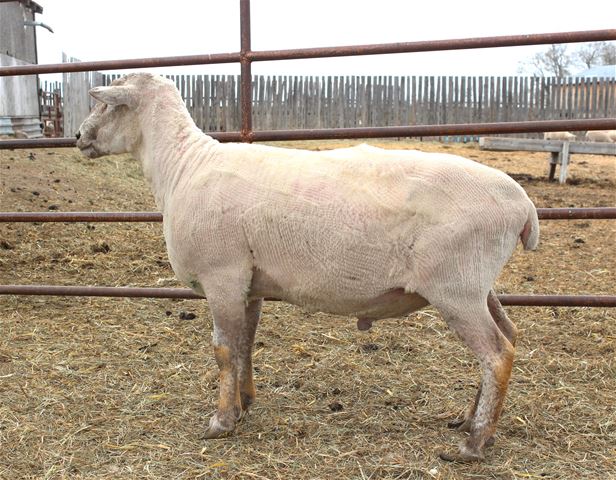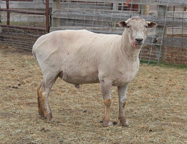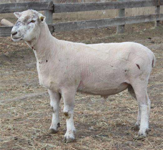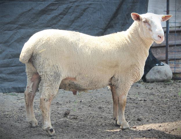 AI-sired by the Polycott 551Y ram makes 956G close to the foundation of the breed. On his dam's side he goes back to the Germanie 4072Y ram. That ram was a stupendous producer of rams and market lambs. His grandmother Aspen 367A takes him back to Sawyer C 104W, a ewe that I always love to see on a pedigree. That makes him related to Badger 83B and Gainer 901G, through the 104W ewe family. This ram is not the same type as those two, but give him his due, that carcass was definitely there! This is what the Canadian Arcott should exhibit- a long body with loads of muscle. He is a bit finer-boned, but coming from a 367A daughter, this is no surprise.