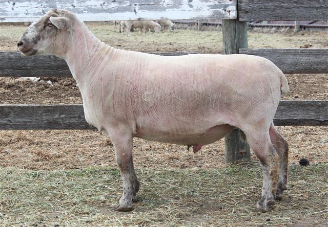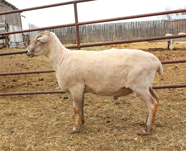 What 188F passed on to his sons more than anything is length, along with good bone and great feet. This ram is a half-brother to Joe 129J.