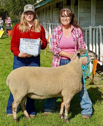 Reserve Ewe Lamb and Supreme Ewe, Medicine Hat , June 2023. Sheep Trax girls!