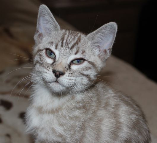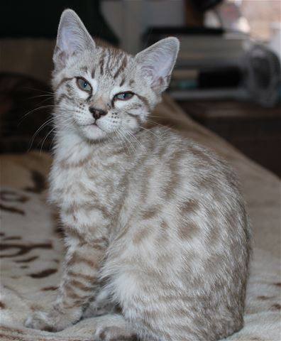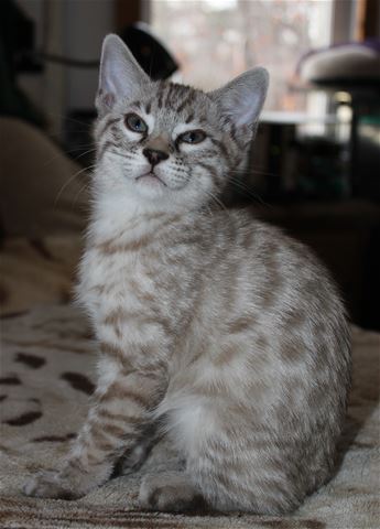 I was hoping this girl, the only female in a litter of five, would have inherited the dilute gene from her mother, but unfortunately she did not. So, since she was going to be kept for producing blue kittens, which she cannot do, she has now been offered for sale.