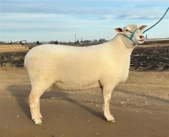 Here is a nice fall born ewe lamb who traces back on the sire side to British ram Sandy Knowe Trent, through 300L who was the high selling Suffolk ram in the 2024 Badlands Select Spring Sale. The dam 276K, is sired by Semiahmoo Jacob who was purchased through the online Classic sale. This ewe lamb was going into my replacement pen, but when we decided to come to the Classic, I thought I should bring a top representation of my small Suffolk flock, so here she is.