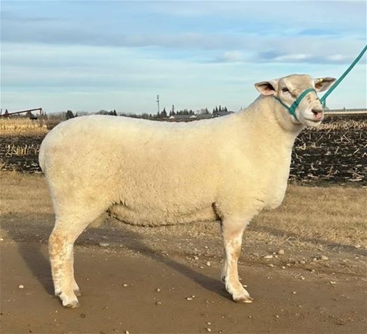 A pedigree chock-full of the foundation and first-generation AI sires. I can't go wrong when I breed a Canon to a Polly (or a Pol to a Candy), and this ram's sire, Canon 941G, is knocking it out of the park consistently. 941G is the sire of the Champion Canadian Arcott Ewe at the 2025 All Canada Classic in Brandon, making this ram her half-brother. Forgetting who his sire was, I took one look at his photos and I knew, this is a 941G son. Which translates to thickness, muscle, and a top like a table.