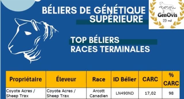 He is my top ram (and the top Canadian Arcott ram) on Genovis for carcass on the Top Rams In Proof list. He is also my highest on the Gain list.
