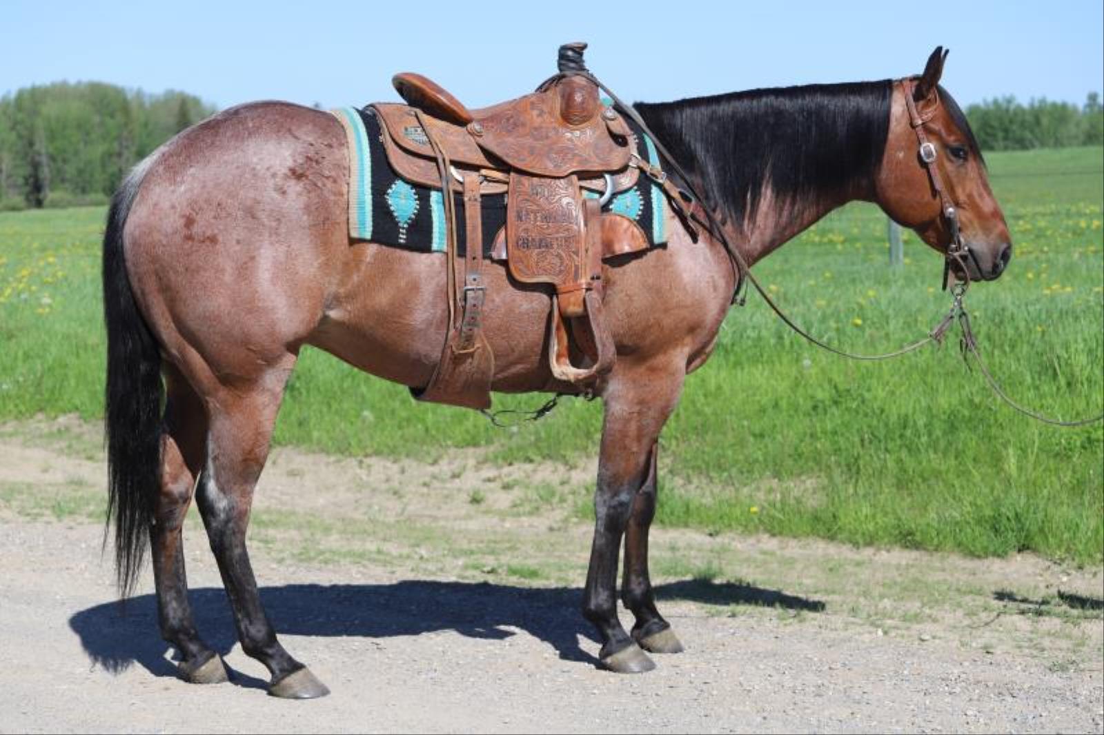 Lot 11WHISKEY ROYALTE is a Bay Roan AQHA Gelding born 2020 and will be offered for sale in the High Call Horse Sale