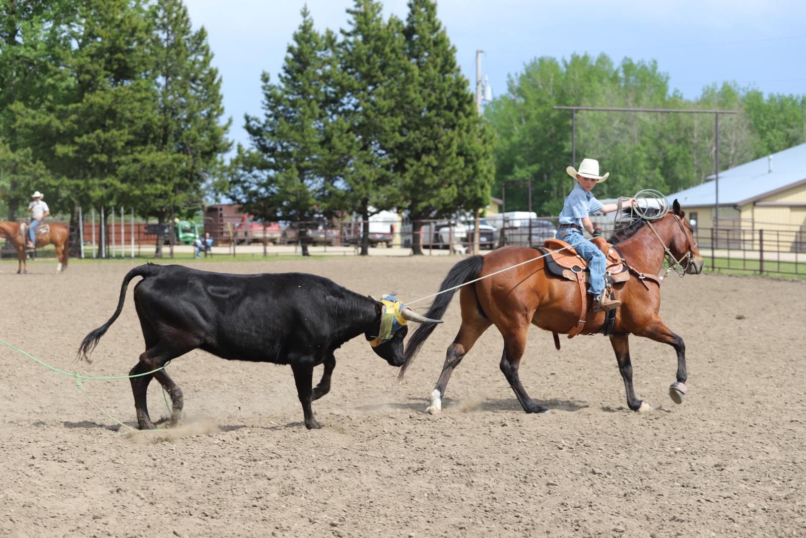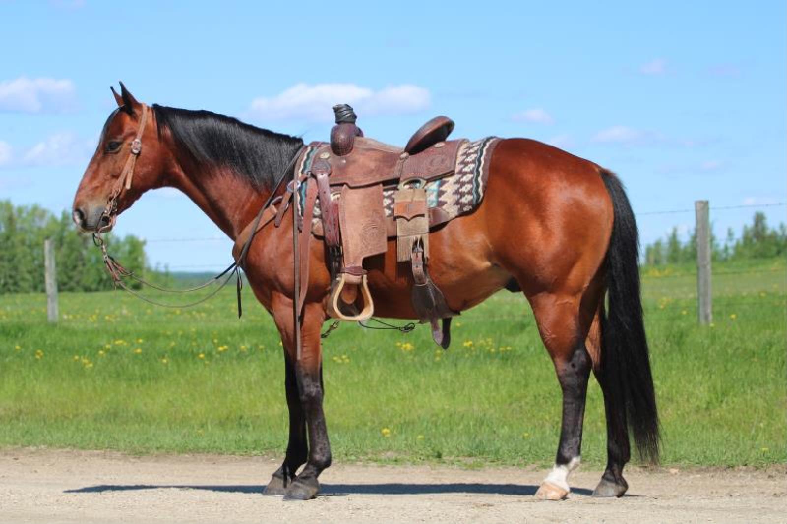Check out this outstanding gelding. Chocolate Chip is a 11 yr old Bay Gelding, Finished Head Horse, Heel Horse and Jr Rodeo Horse. He is good in the box, leaves flat and gets you that same throw every time. He can go to open Jackpot and then the kids can jump on him and go to the Junior Rodeos. Chocolate Chip was hauled to Jr Rodeos by our 7 Yr old Grandson competing in ( Team Roping, Goat Tying, Breakaway, Barrels and Poles). This gelding can do it all, and you will love him every single minute! Chocolate Chip is equally as great outside the arena, and has been used extensively on our ranch to do all aspects of ranch work, from sorting pairs, to dragging calves at the branding.>He has been hauled to Jackpots and ridden, by all levels of Ropers. Chocolate Chip is the first one to meet you at the gate. He has the sweetest disposition and is a family favourite on our Ranch. He is great to shoe, clip and bath. You won't want to let this one pass you by!!