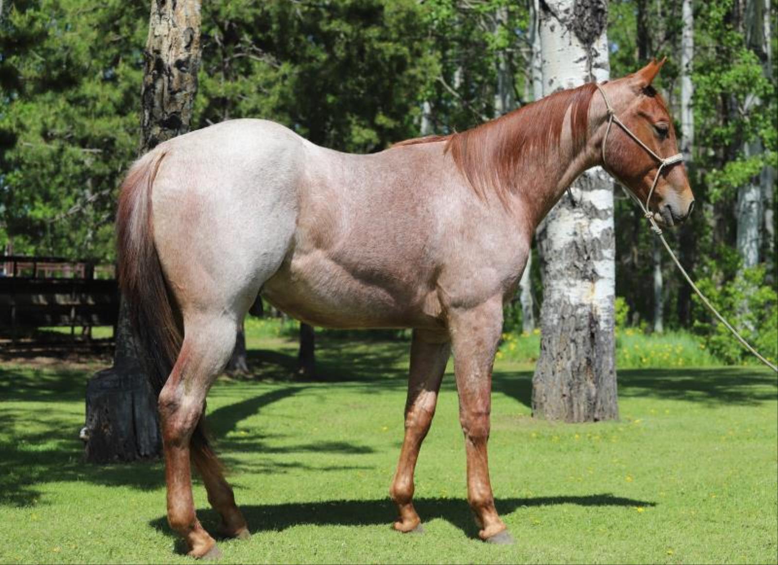 Lot 29BSR LOCK is a Red Roan AQHA Gelding born 2023 and will be offered for sale in the High Call Horse Sale